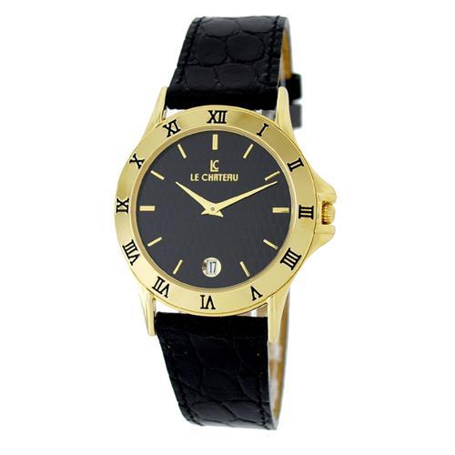 More Than Just A Timepiece, An Incredible Design An Work Of Art. This Beatiful Le Chateau Watch With Roman Numerals And Textured Dial Features A Genuine Japanese Seiko Movement, A Genuine Leather Band With 'Croco' Stamping, & Date. Watch Is Water Resistant And Includes A Three Years Manufacturer's Warranty.