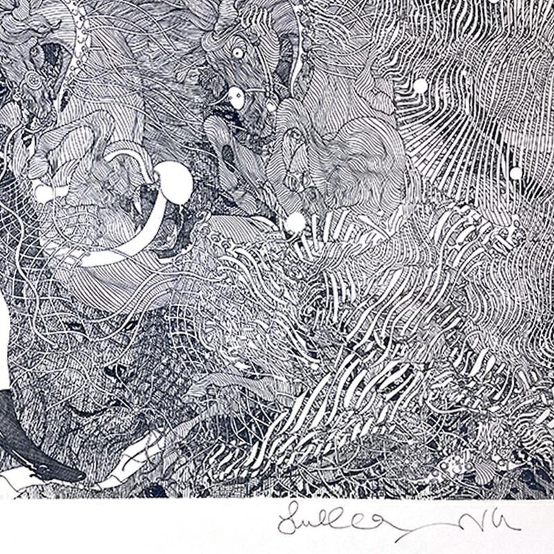 "Le Circue (Blue)" is a limited edition etching on paper by Guillaume Azoulay, numbered 1/1 and hand signed by the artist. This piece comes custom framed. Includes Letter of Authenticity. Measures approx. 28" x 29.5" (frame), 17.5" x 19" (image).