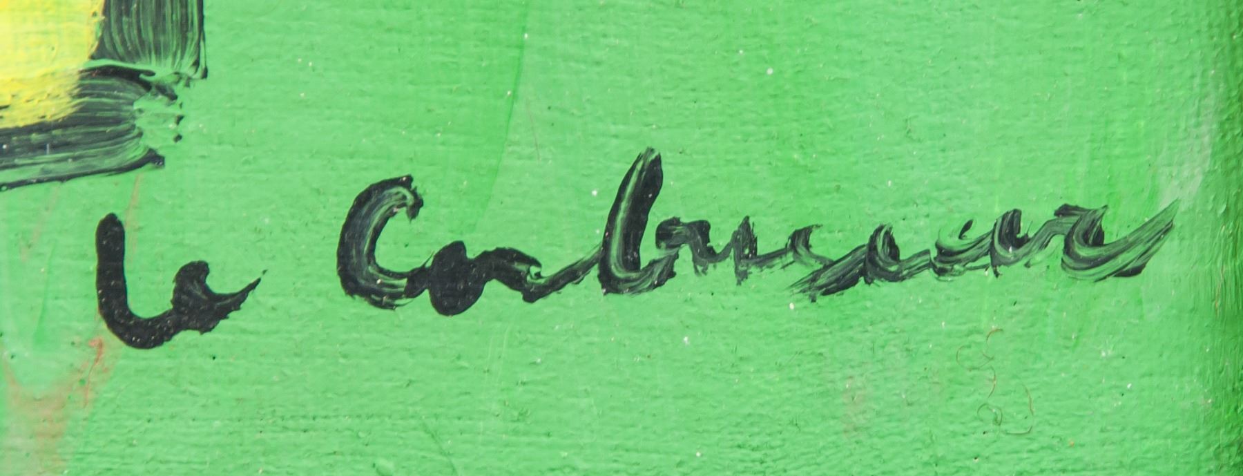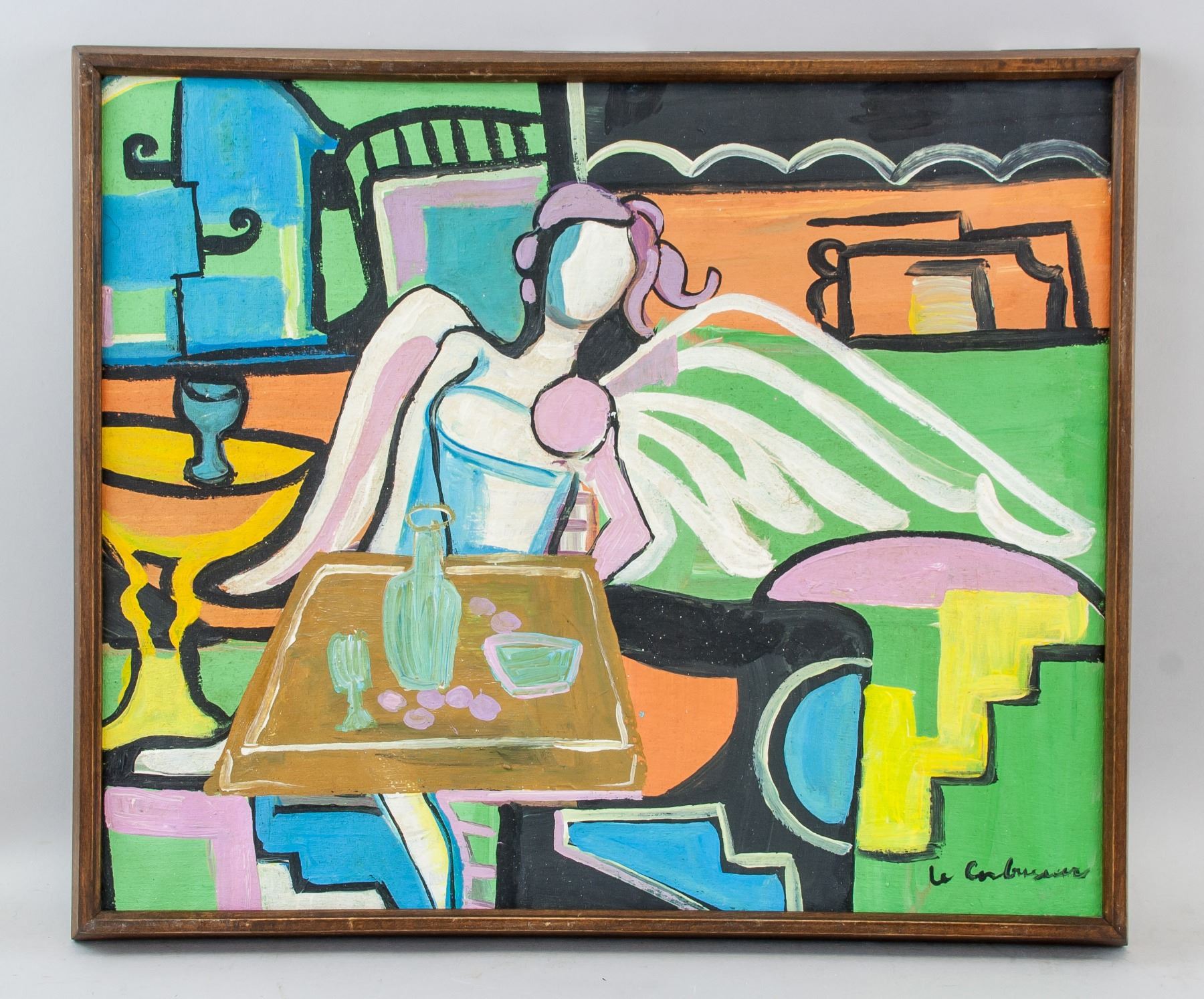Oil on canvas, framed. Featuring an abstract composition. Signed Le Corbusier on the lower right corner, Attributed to Le Corbusier (1887-1965, French). 38 x 46 cm (14.9 x 18.1 inches).