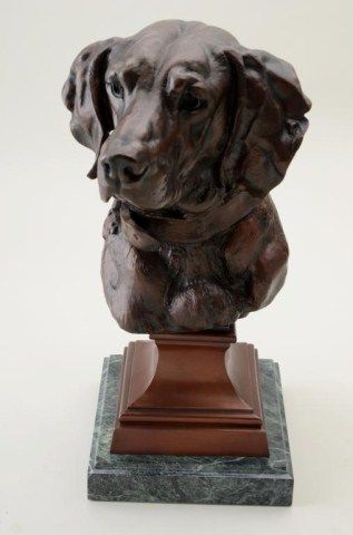 Le Courtier marked bronze of hunting dog mounted on marble, founder marked Casa aBellas Artes, Buenos Aires; 20” + in height by 9-1/2” with marble base. From the estate of Robert Petersen. Est.: $600-$1,200.