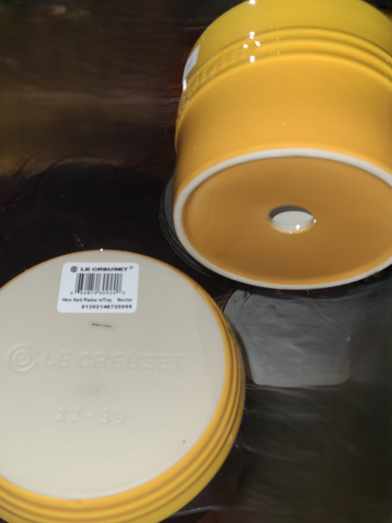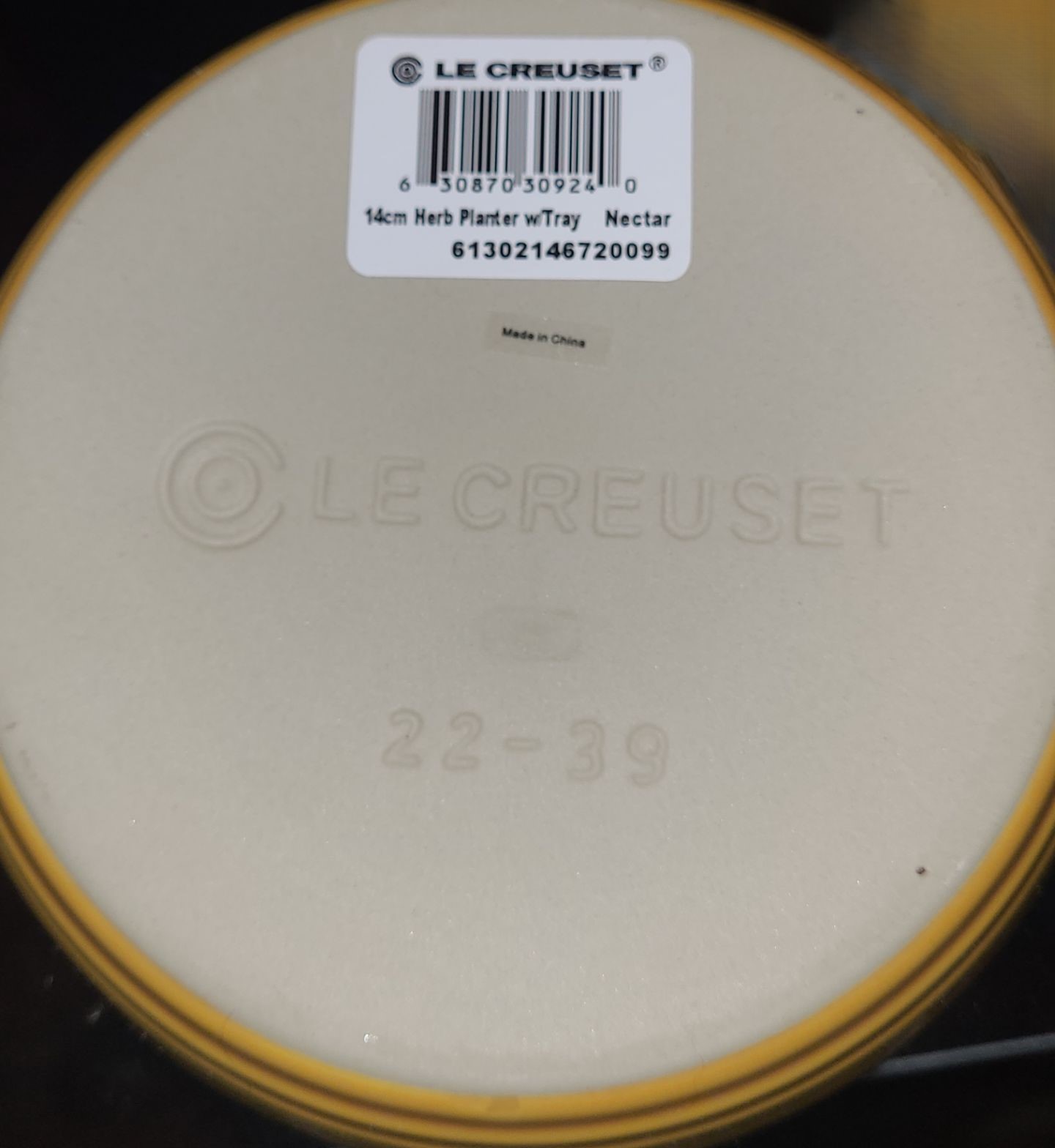 Le Creuset Herb Planter with Tray 7 Diameter Plate, Pot is 5 Diameter Top, 4.5 T Including Plate
