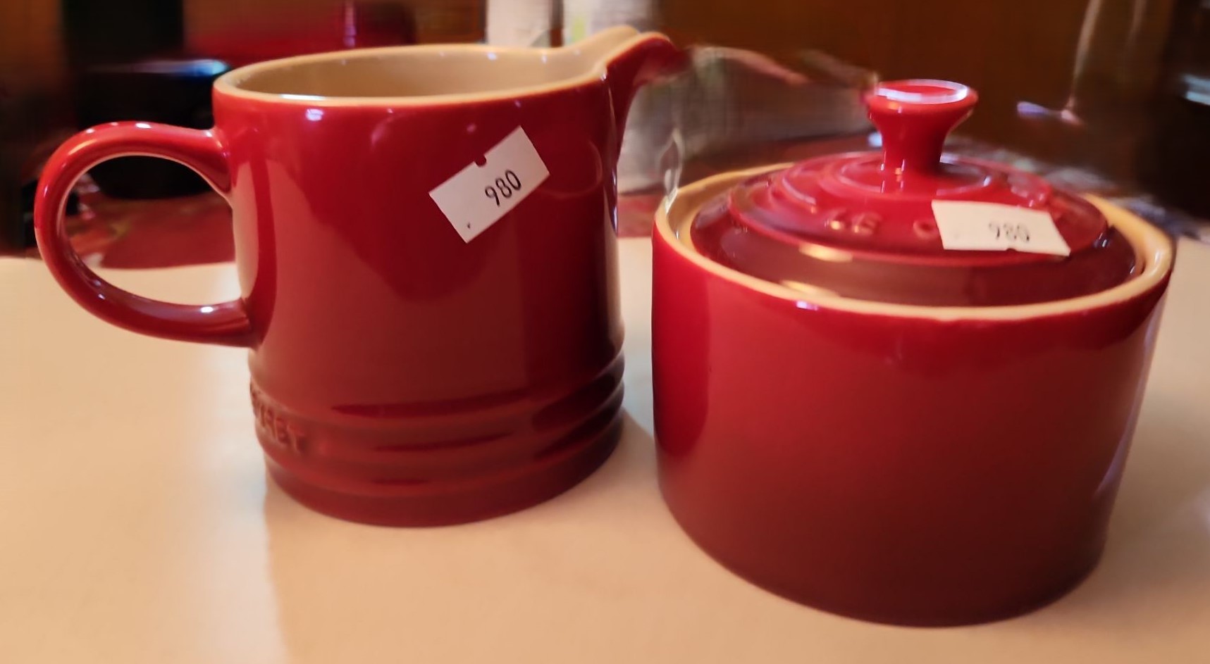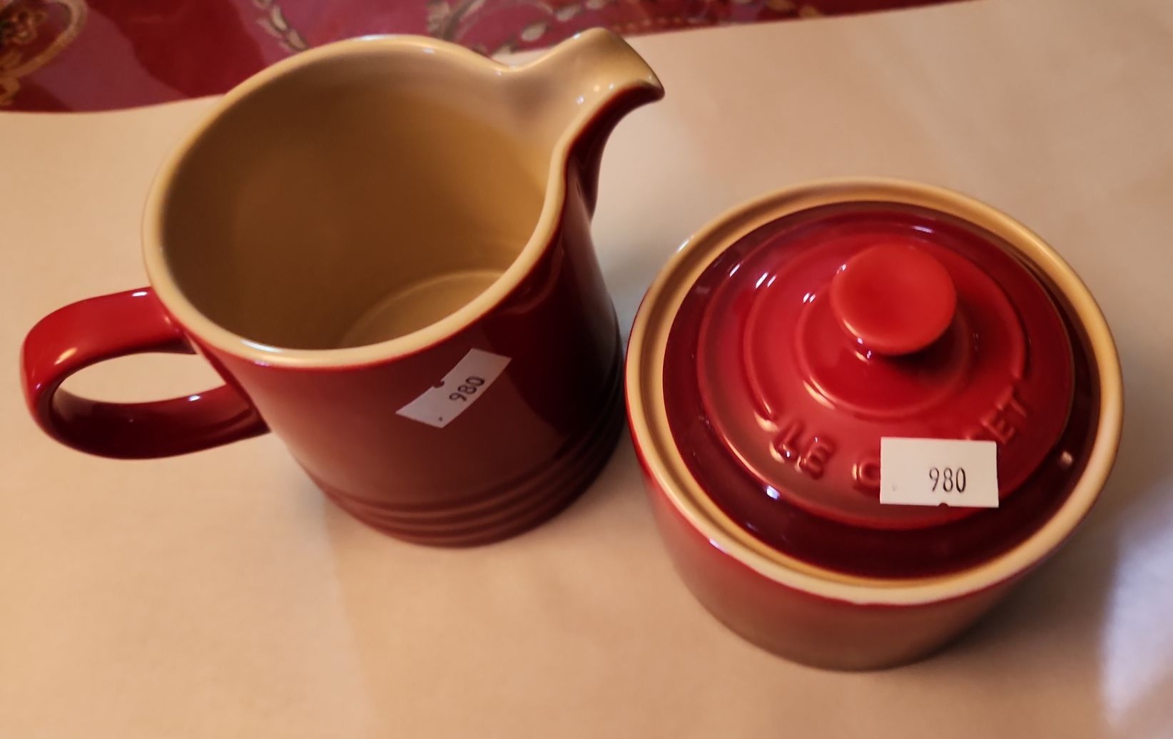 Le Creuset Sugar Pot and Milk 300 ml  Jug Cerise 350 ml
