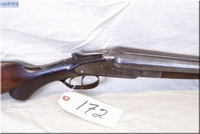Le Fever Arms mod Side By Side Hammerless .12 Ga Shotgun w/30" bbls [ fading Damascus finished bbls, worn checkered pistol grip stock & forend, extractors, w/cocking indicators note : sling hole in bottom of butt stock ] Ser # 16802