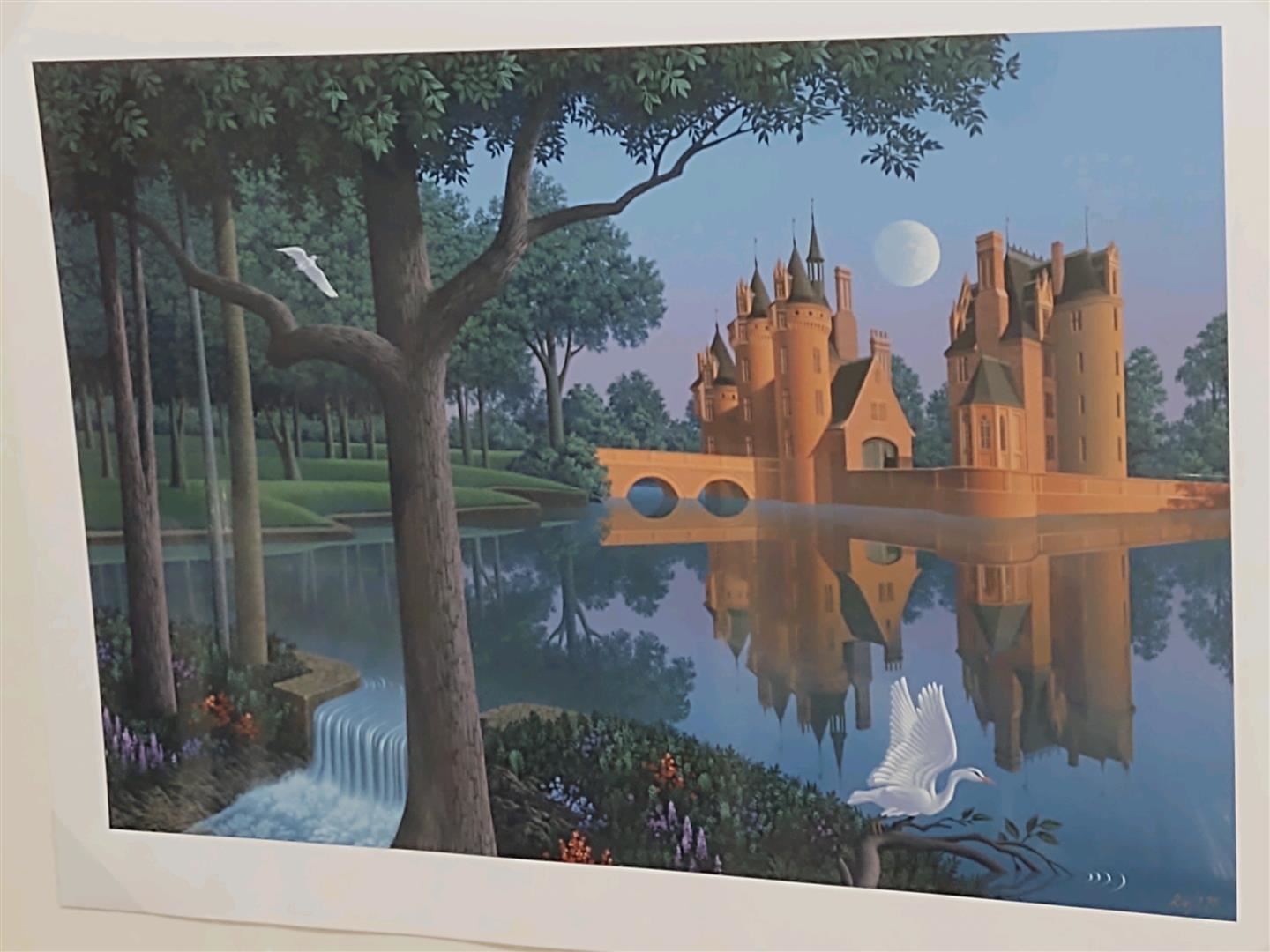 Le Moulin by Jim Buckels. Limited Edition, Serigraph on Paper. 23" x 34". Produced in 1999.
