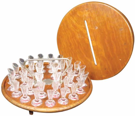Le Page Individual Communion Cup Serving Set, complete. Patent 1896, Toronto, Canada. Excellent condition. 13 inch diameter X 4 1/2 inches tall.