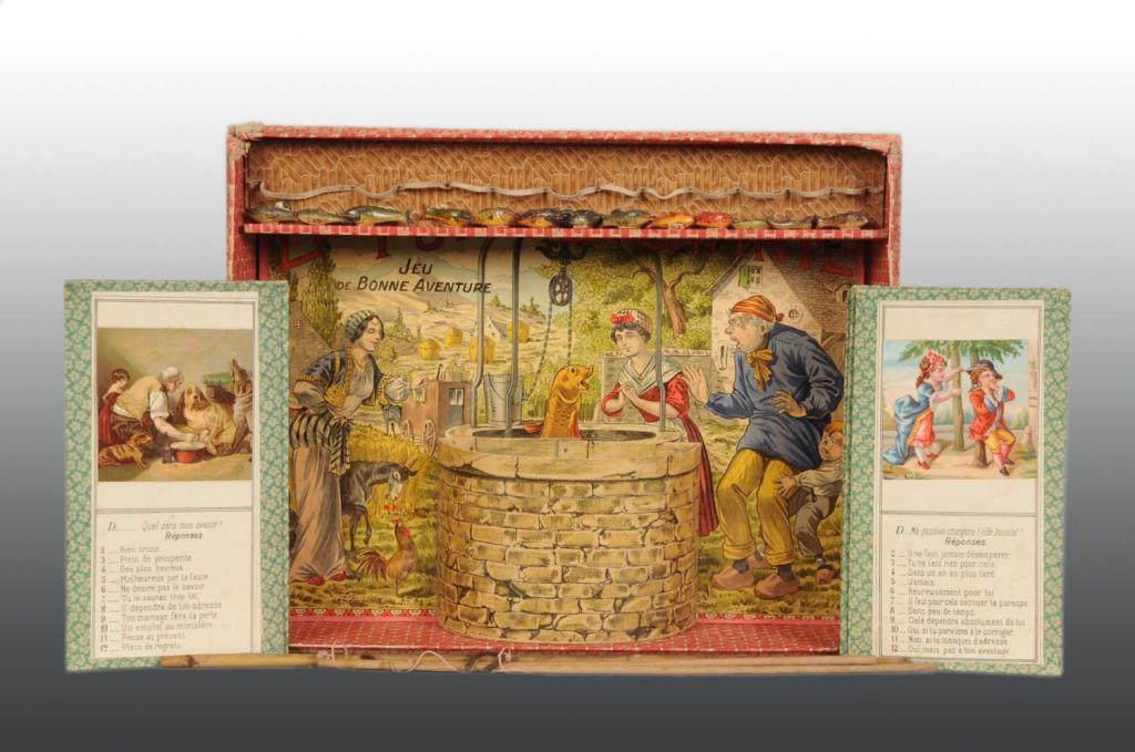 Includes six responses, 13 fish and three wooden fishing rods. Condition (Very Good - Excellent). Size 12 - 1/2" x 16".