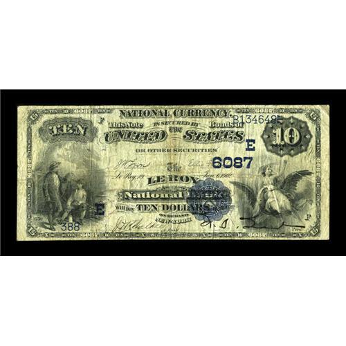 <B>Le Roy, NY</B></I> - $10 1882 Date Back Fr. 545 <B>The Le Roy NB</B></I> Ch. # (E)6087<BR>An evenly circulated Second Charter Date Back from this very much sought after location. <B>Fine,</B></I> with pen signatures.<BR><BR><b>Shipping:</b> Coin/Currency (<a target="_blank" href="http://www.heritageauctions.com/common/shipping.php">view shipping information</a>)