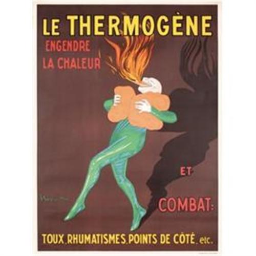 This is a later printing done in the 60s, of the famous Cappiello poster Le Thermogene. The advertising campaign was very successful and the image was used again in the 60s. This poster is in A condition on linen, 29 x 22"