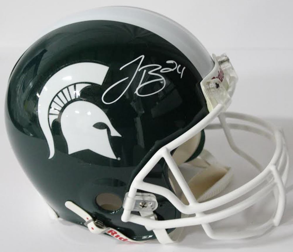 Michigan State Spartans full-size authentic on-field helmet. Hand-signed in white paint pen by Le'Veon Bell.