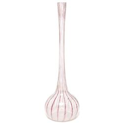 Le Verre Francais vase, attribution, long slender ribbed neck plunging into a bulbous foot in clear glass with enameled red stripes, 23”h