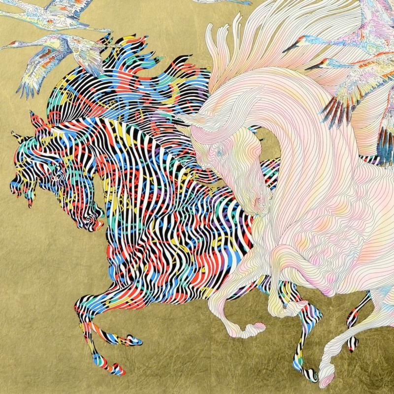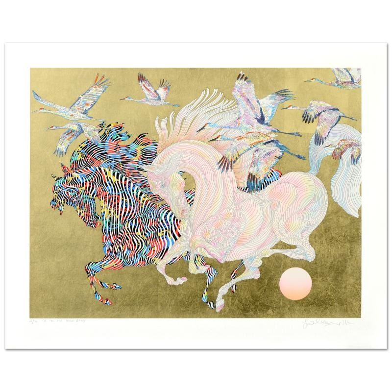 Le Vol Des Grues Limited Edition Serigraph with Hand Laid Gold Leaf by Guillaume Azoulay, Numbered a