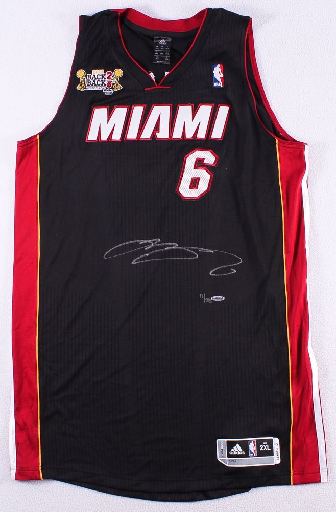 Adidas authentic on-court jersey, size 2XL. Hand-signed in silver paint pen by LeBron James (Cavaliers). Jersey is limited edition and has been hand-numbered #11/25.