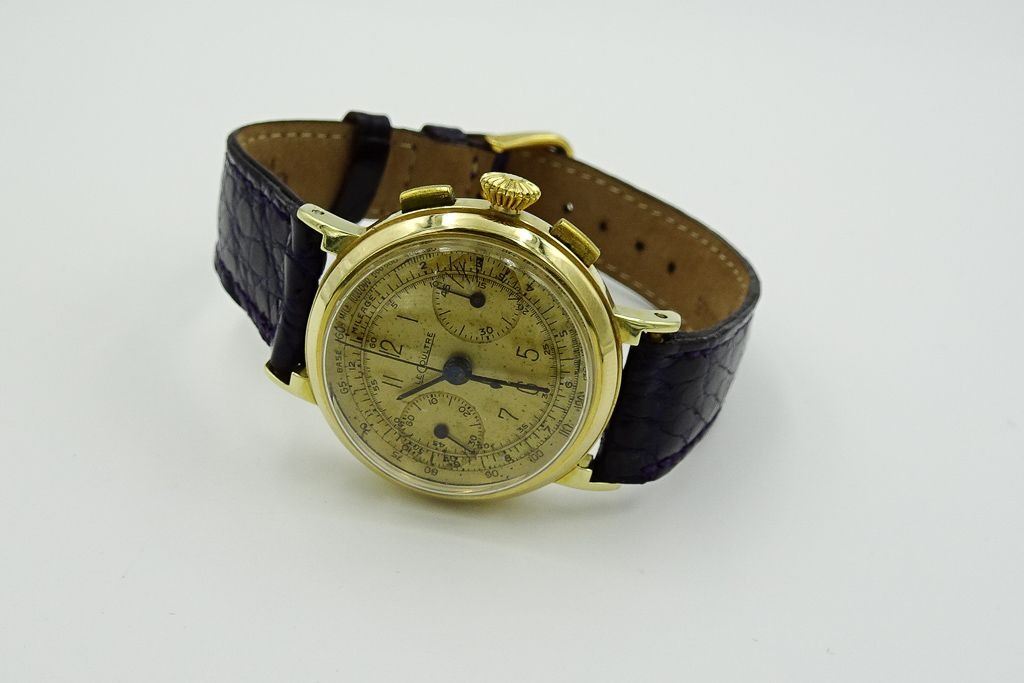 Model: PRIVATE COLLECTION MK - Rare Early Gold Mens LeCoultre Fancy Case Chronograph Wristwatch