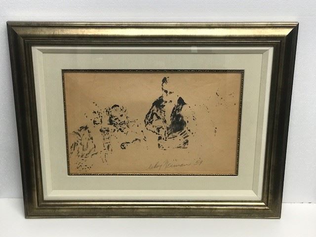LeRoy Neiman "Cuisine" Original marker sketch on Paper signed by LeRoy Neiman - Circa 1958 - Framed size = 34"x26" - Includes Certificate of Authenticity