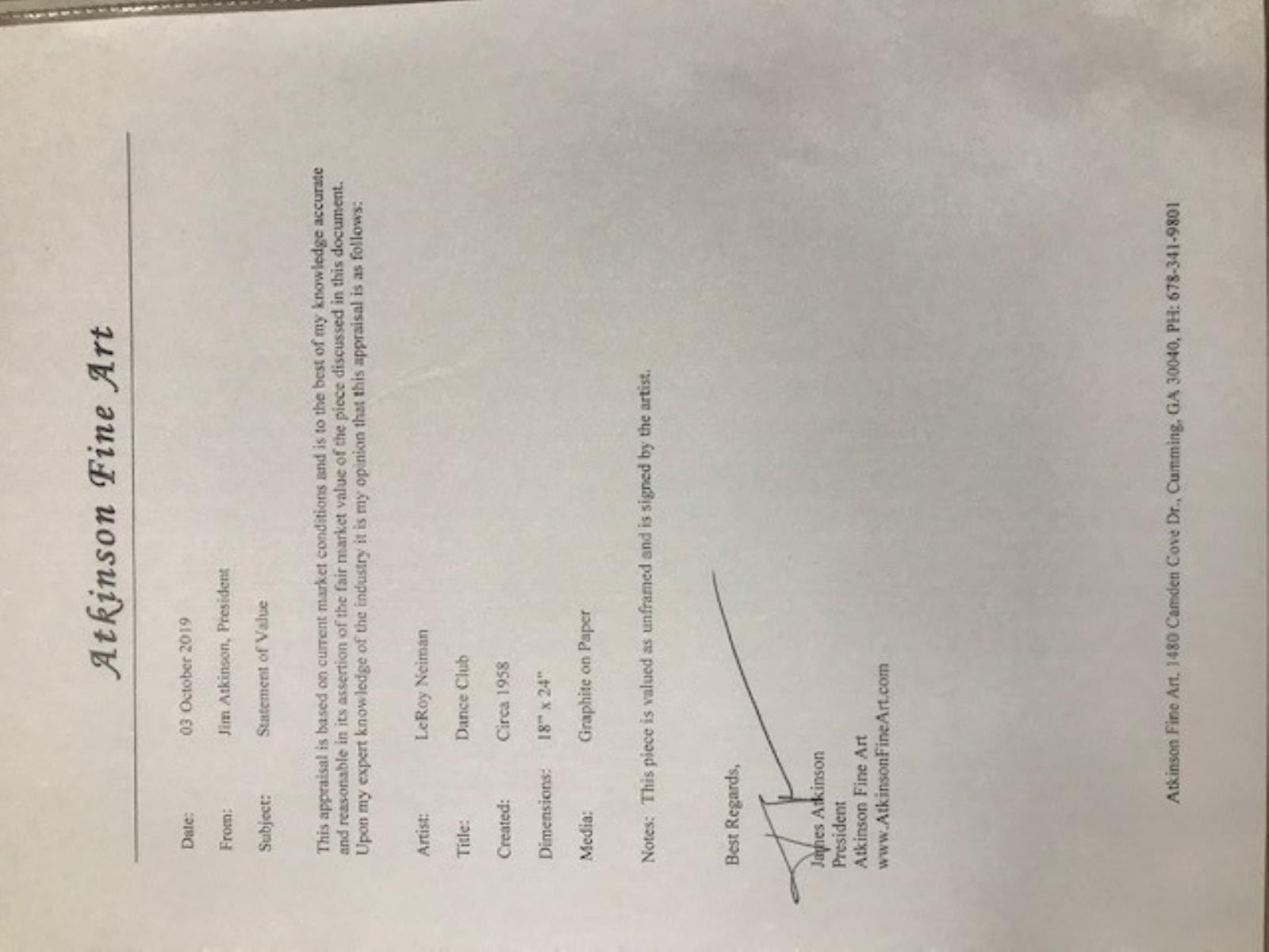 LeRoy Neiman "Dance Club" Original Graphite sketch on paper signed by LeRoy Neiman - Circa 1958 - Framed size = 34" x 28" - Includes Certificate of Authenticity