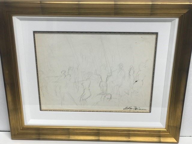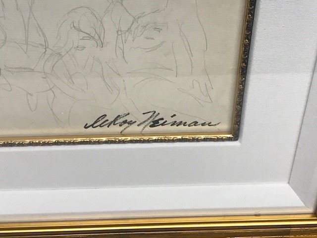 LeRoy Neiman "Dance Club" Original Graphite sketch on paper signed by LeRoy Neiman - Circa 1958 - Framed size = 34" x 28" - Includes Certificate of Authenticity