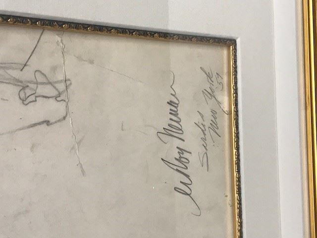 LeRoy Neiman "Sardis New York" - Original pencil sketch on paper signed by LeRoy Neiman - Circa 1959 - Framed size = 33"x38" - Includes Certificate of Authenticity