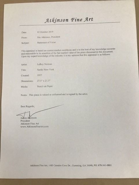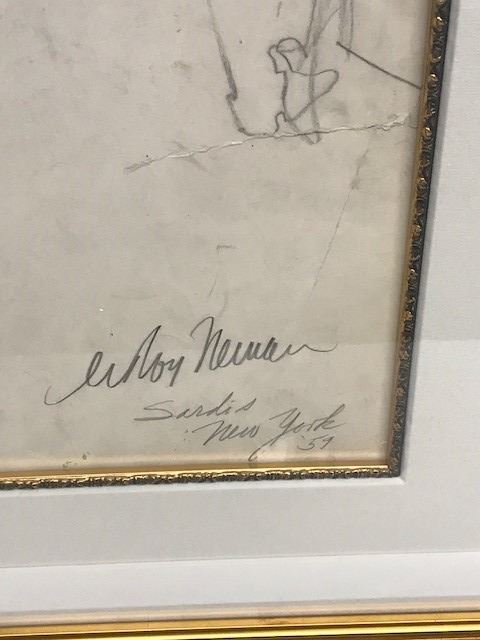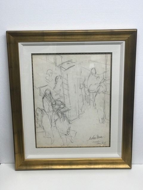 LeRoy Neiman "Sardis New York" - Original pencil sketch on paper signed by LeRoy Neiman - Circa 1959 - Framed size = 33"x38" - Includes Certificate of Authenticity