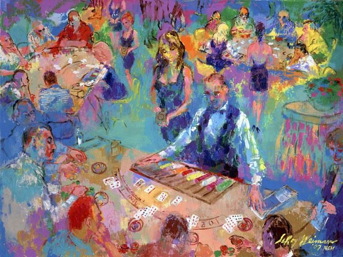 The MGM Grand features some high stakes blackjack, and this signed Neiman print portrays the steady concentration of the game amidst tense excitement.Artist: LeRoy Neiman Title: "High Stakes Blackjack MGM Grand Las Vegas" Medium: Serigraph on paperSheet size: 28 1/4 x 38 inches Signature: By the artistDate: 2008Condition: ExcellentBiography:LeRoy Neiman (1921-_) is one of our most popular and prolific contemporary artists. His work consistently garners popular praise and critical acclaim. He transformed "sports art" into "fine art."