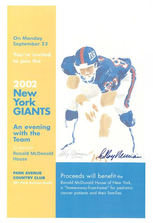 Poster from the New York Giants 2002 event, ''Evening with the Team,'' signed by acclaimed sports illustrator LeRoy Neiman who created the artwork for the poster. Measures 12'' x 18'' in very good condition. With PSA/DNA COA.
