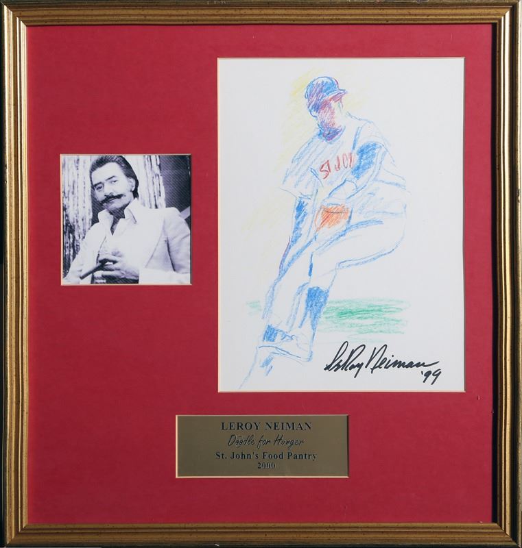 LeRoy Neiman, St. Louis Cardinals Baseball Player, Pastel Drawing with Photograph