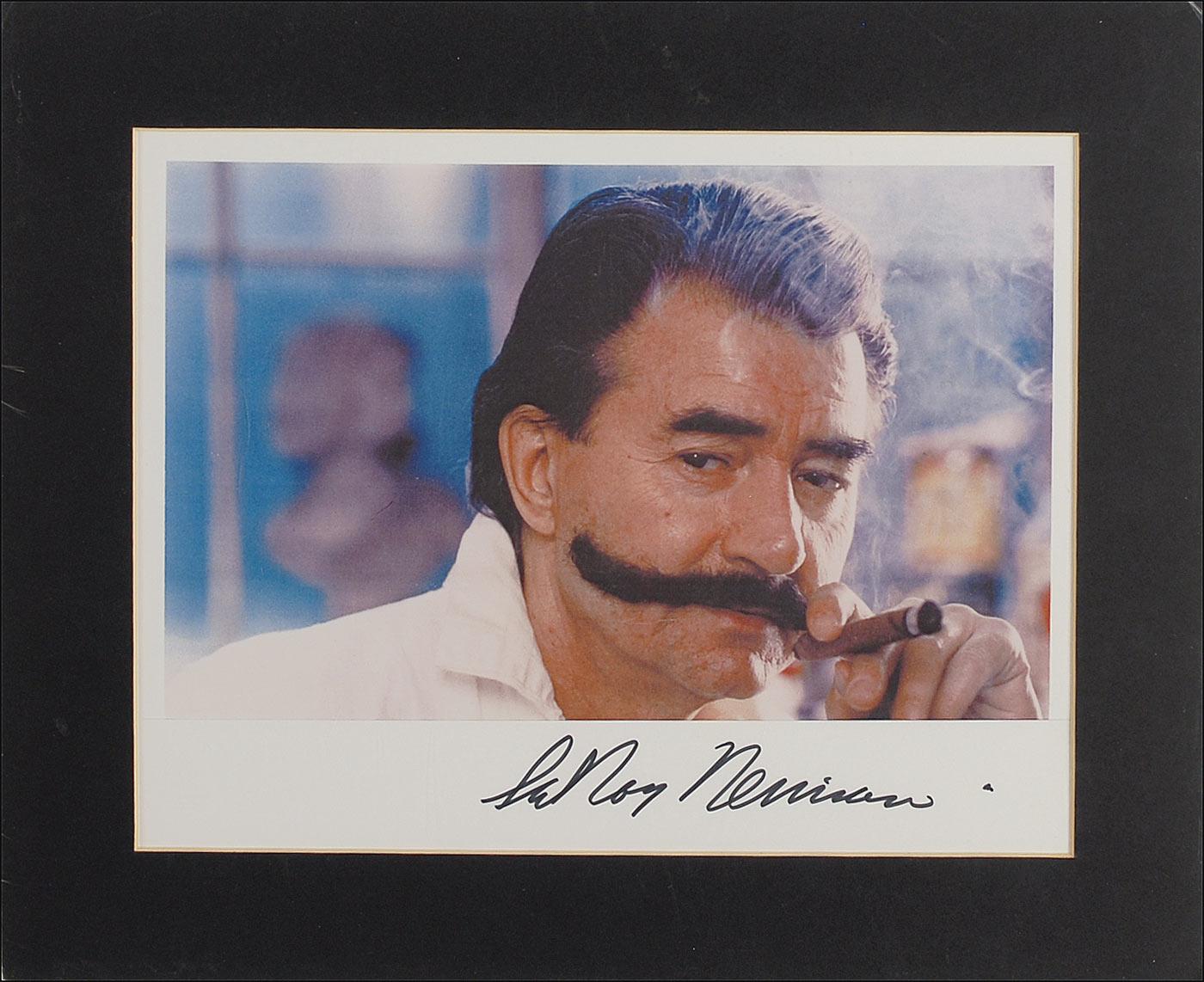 Color matte-finish 9.75 x 7.5 photo of the artist smoking a cigar, boldly signed in black felt tip. Matted to an overall size of 12.75 x 10.5 and sealed in plastic as originally sold. In fine condition. Accompanied by a certificate of authenticity from the International Boxing Hall of Fame.