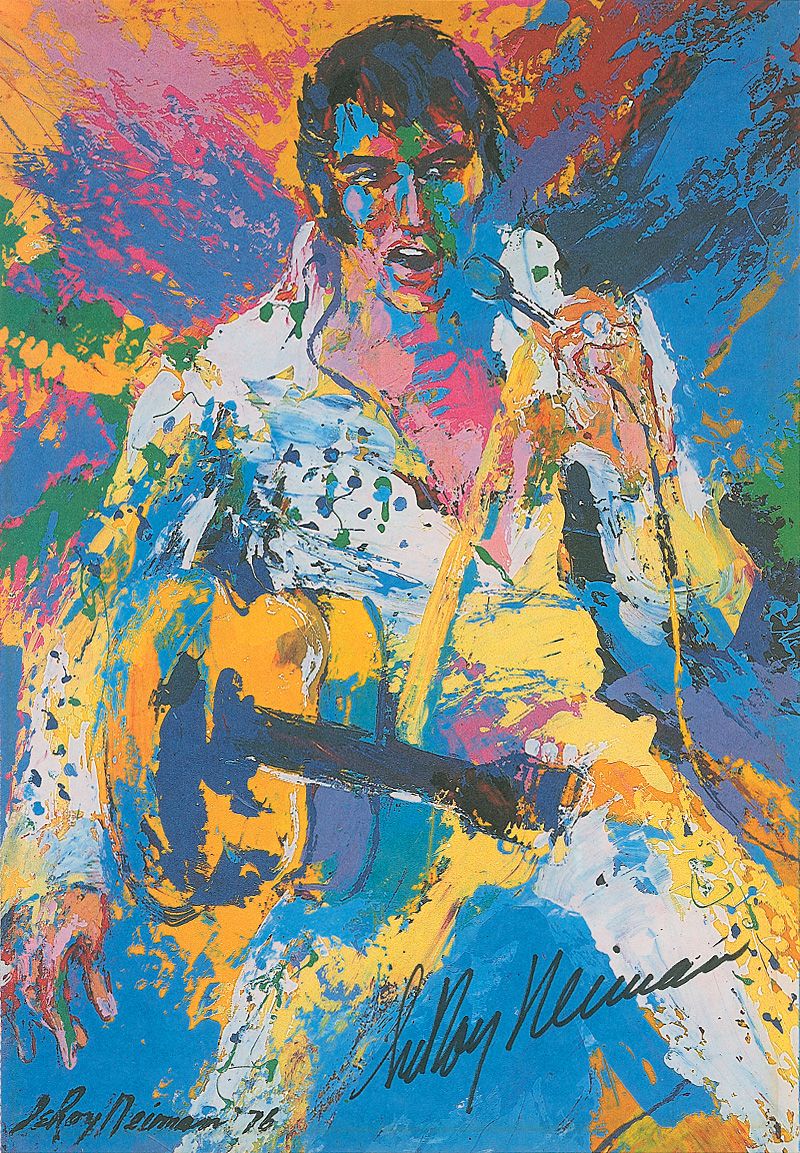 Color 7.5 x 10.75 book photo of Neiman’s Elvis portrait, signed in black felt tip. In fine condition.