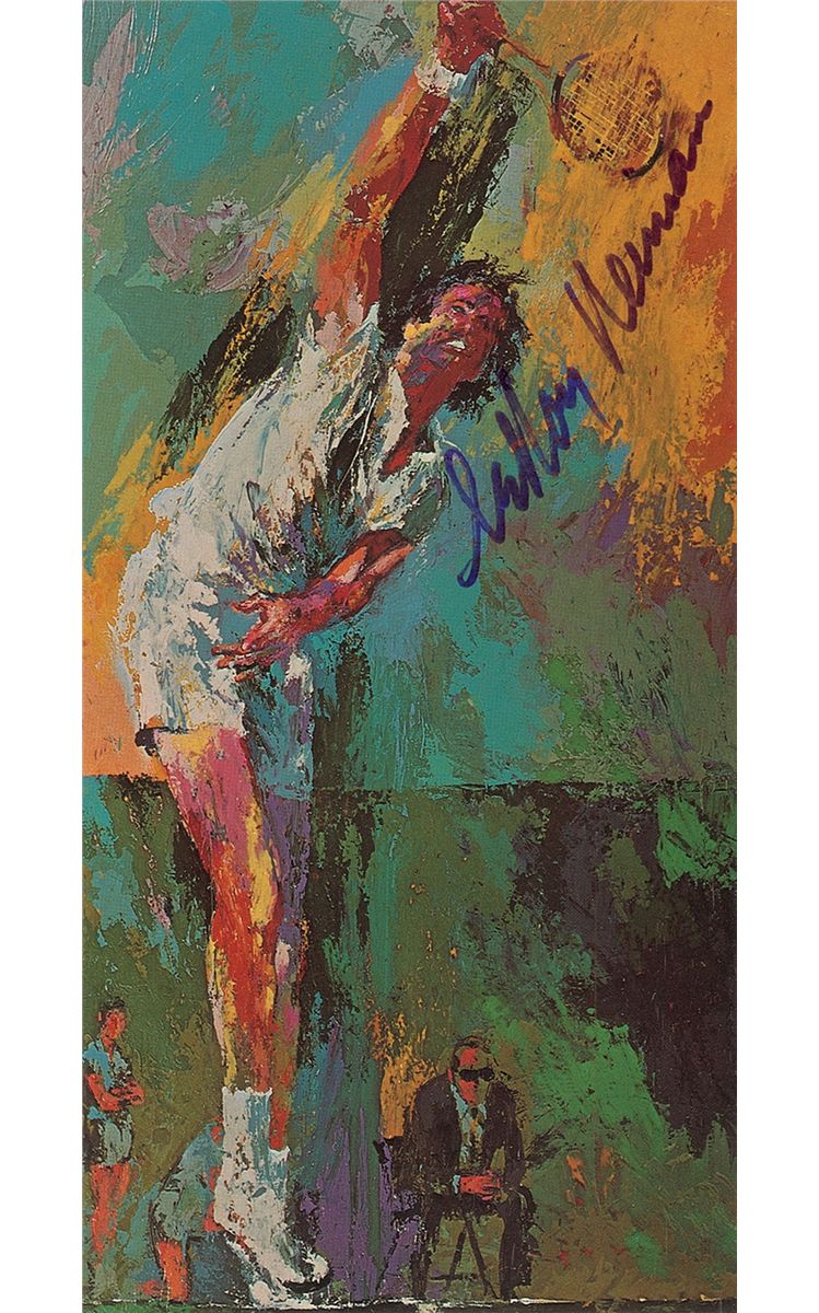 Two color cardstock photos of Neiman’s works, 4.25 x 8.5 and 5.25 x 6, each signed in felt tip. In overall fine condition, with trimmed edges to the horse racing photo.