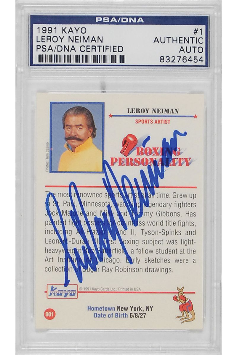 Kayo Cards 1991 trading card featuring Neiman’s painting of a boxer, signed on the reverse in blue felt tip. Encapsulated in a plastic PSA/DNA authentication holder. In fine condition.