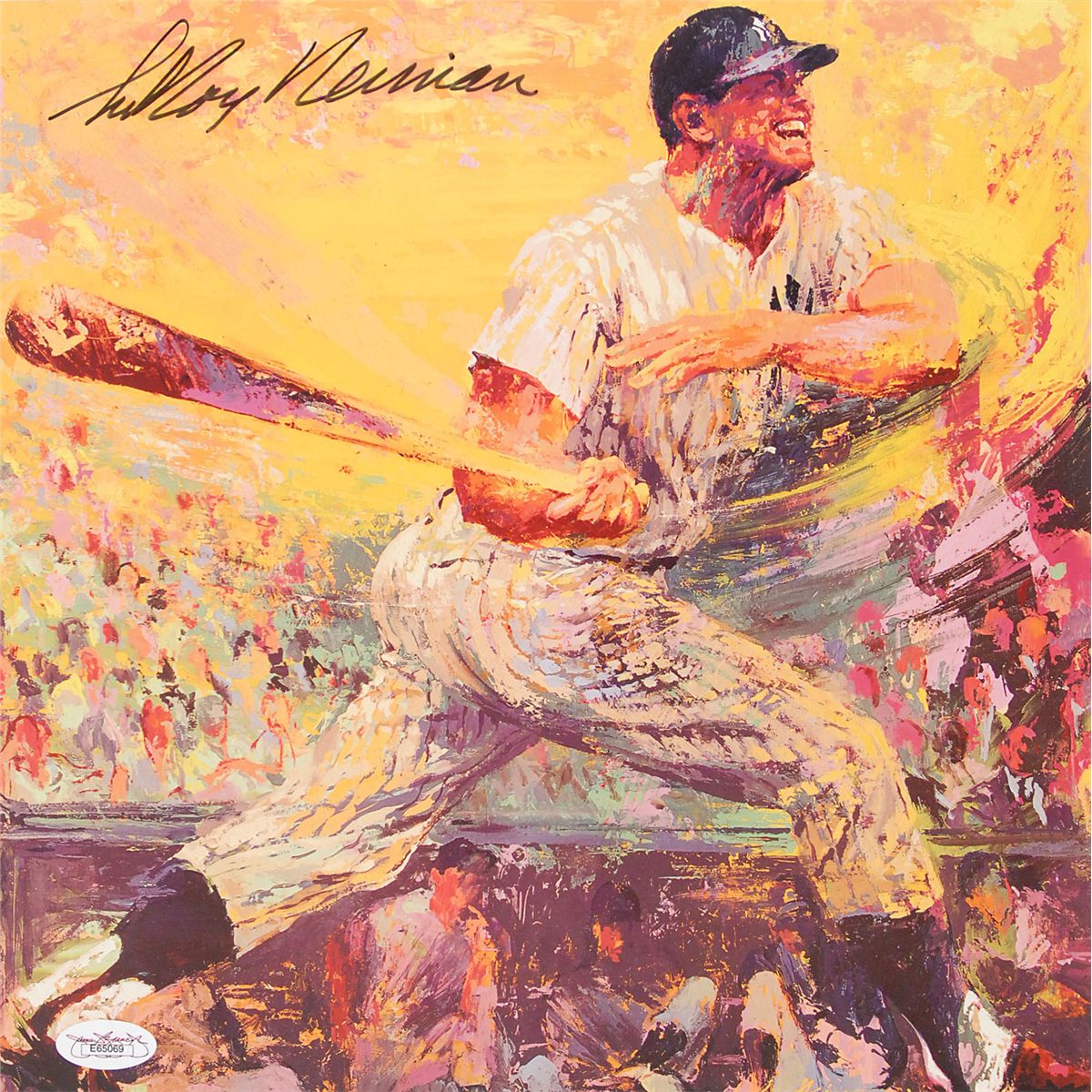 Vibrant color 10.75 x 10.75 cardstock print of Neiman’s painting of Mickey Mantle, nicely signed in black felt tip, “LeRoy Neiman.” Custom double-matted to an overall size of 16 x 17. In fine condition, a JSA label affixed to the lower left corner. Accompanied by a certificate of authenticity from JSA.
