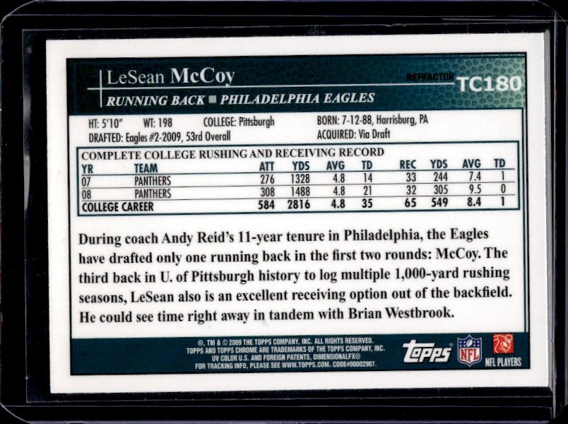 LeSean McCoy Refractor Rookie Card 2009 Topps Chrome #TC180
