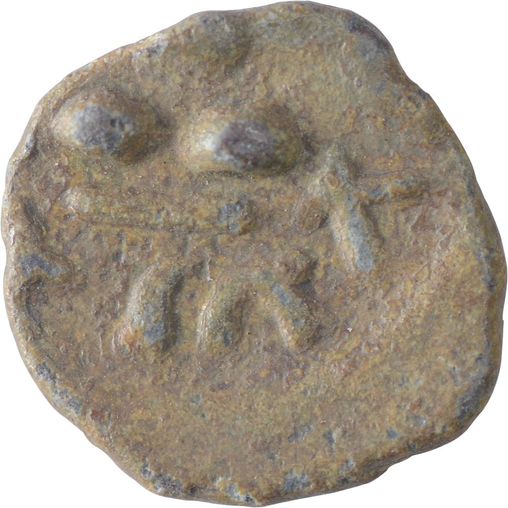 Maharathis Dynasty,Nashik Region,Lead Unit, Obv:crescented three peaked hill, brahmi legend around (yanam) mahararathi(sa),Rev:ujjaini symbol partly visible,0.84g,11.10mm,about extremely fine,Scarce.