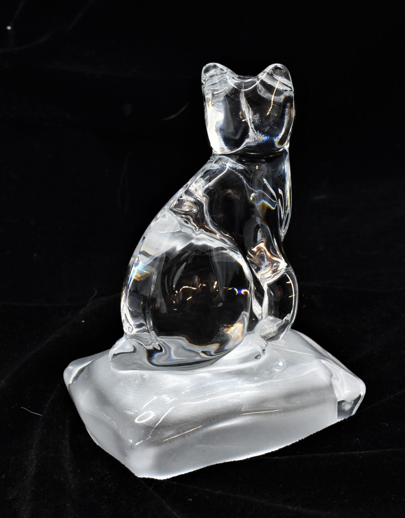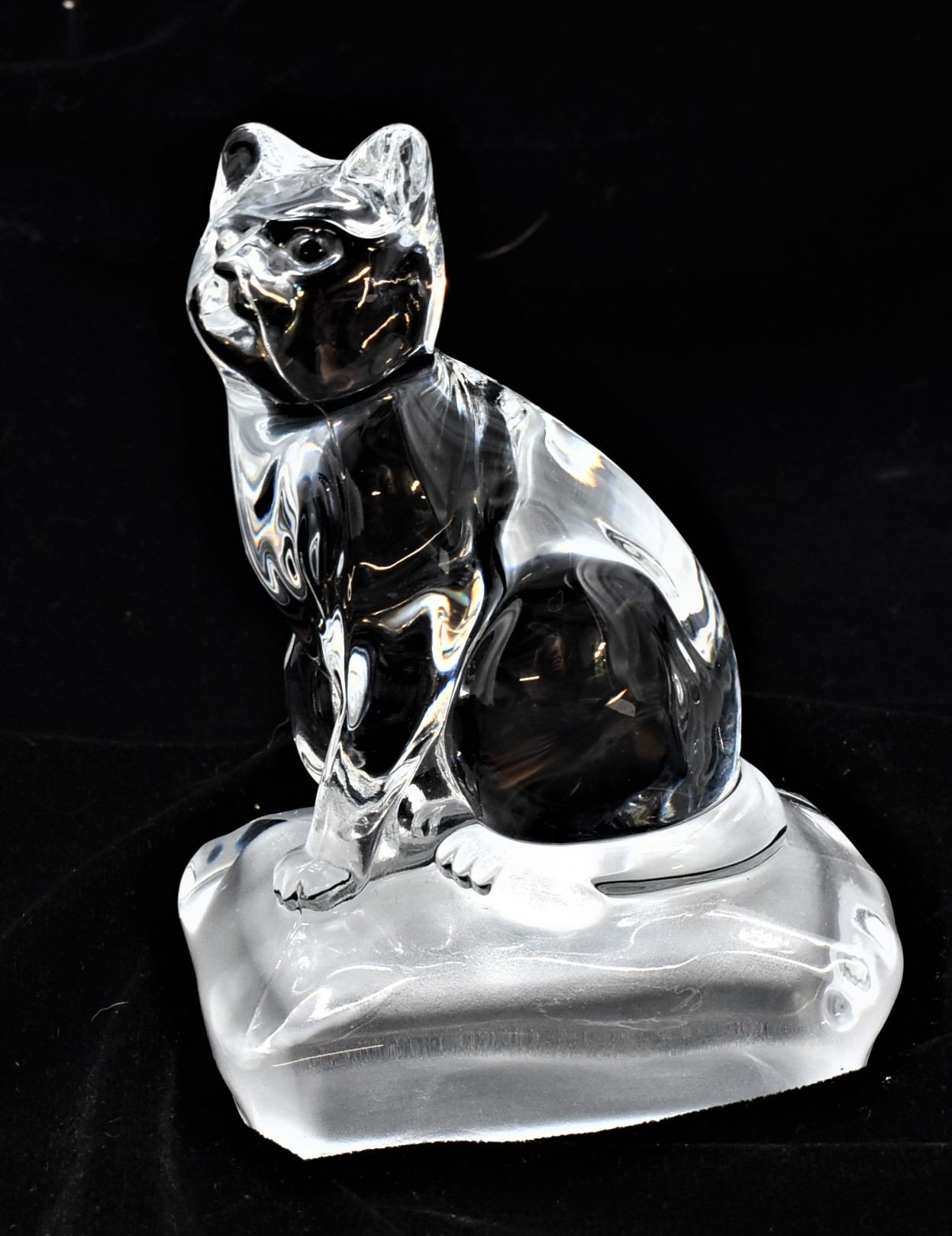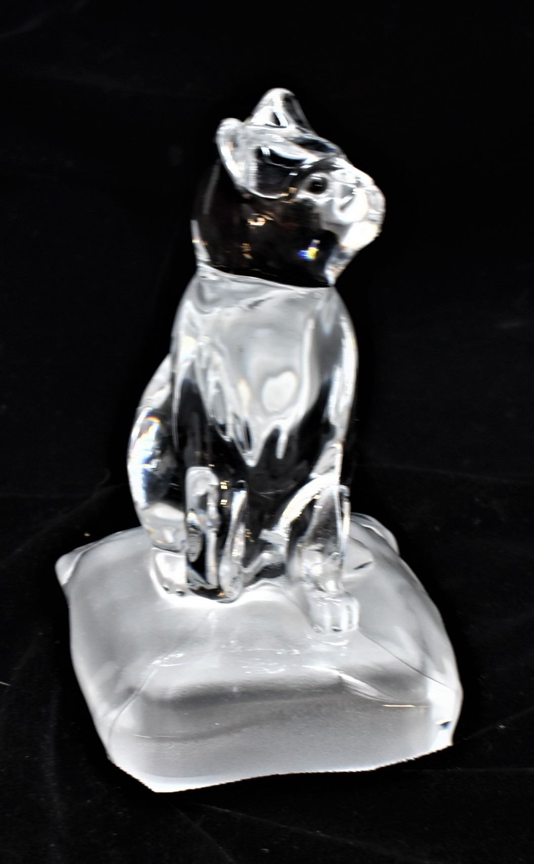 Vintage Cristal d'Arques Durand Lead Crystal Cat Figurine Sitting on a Frosted Glass Pillow, measures 3.75'' Deep x 5.25''H x 3''W