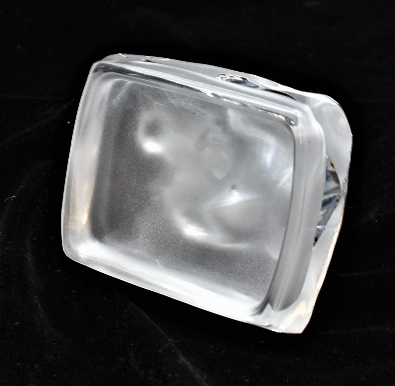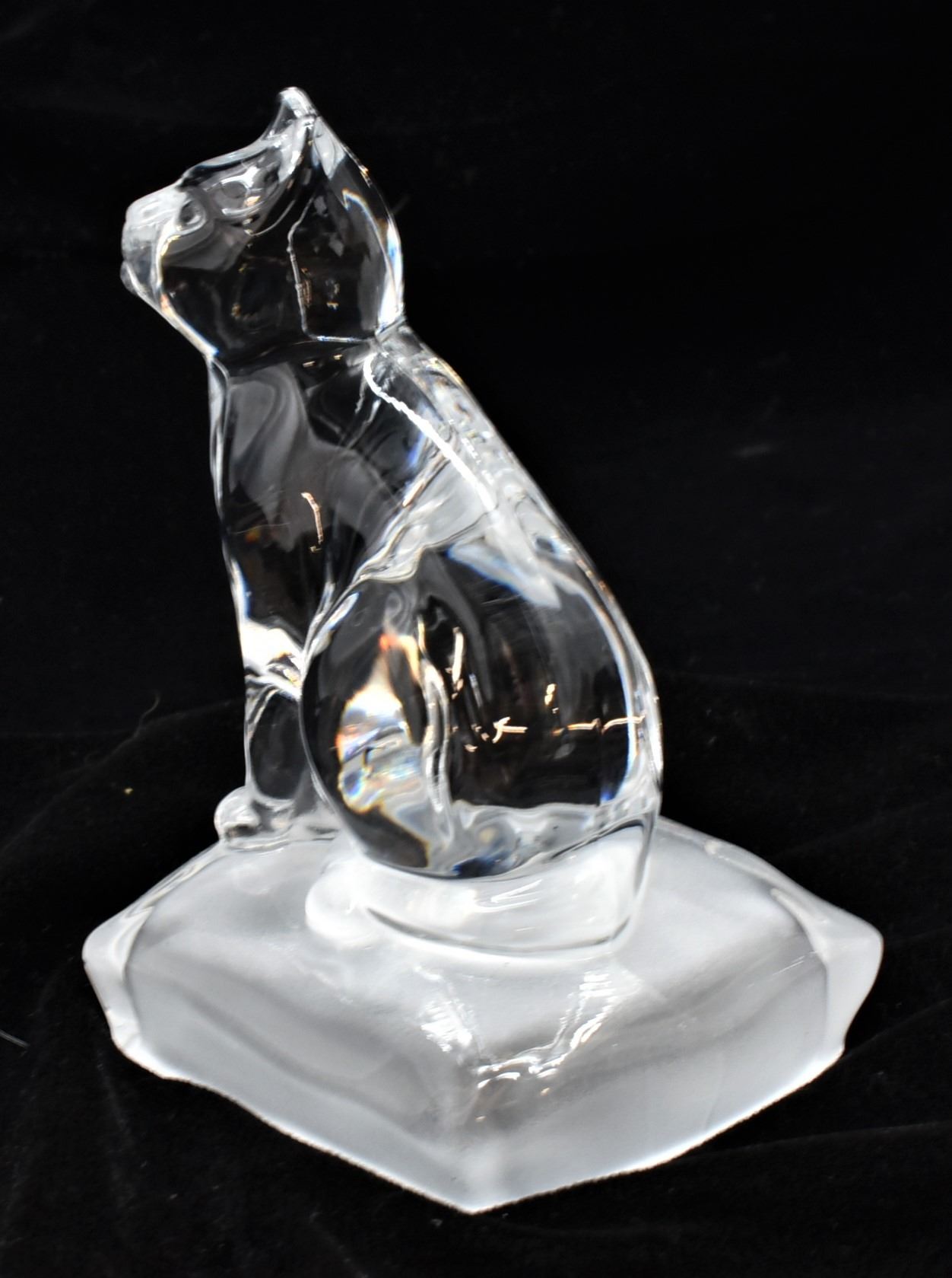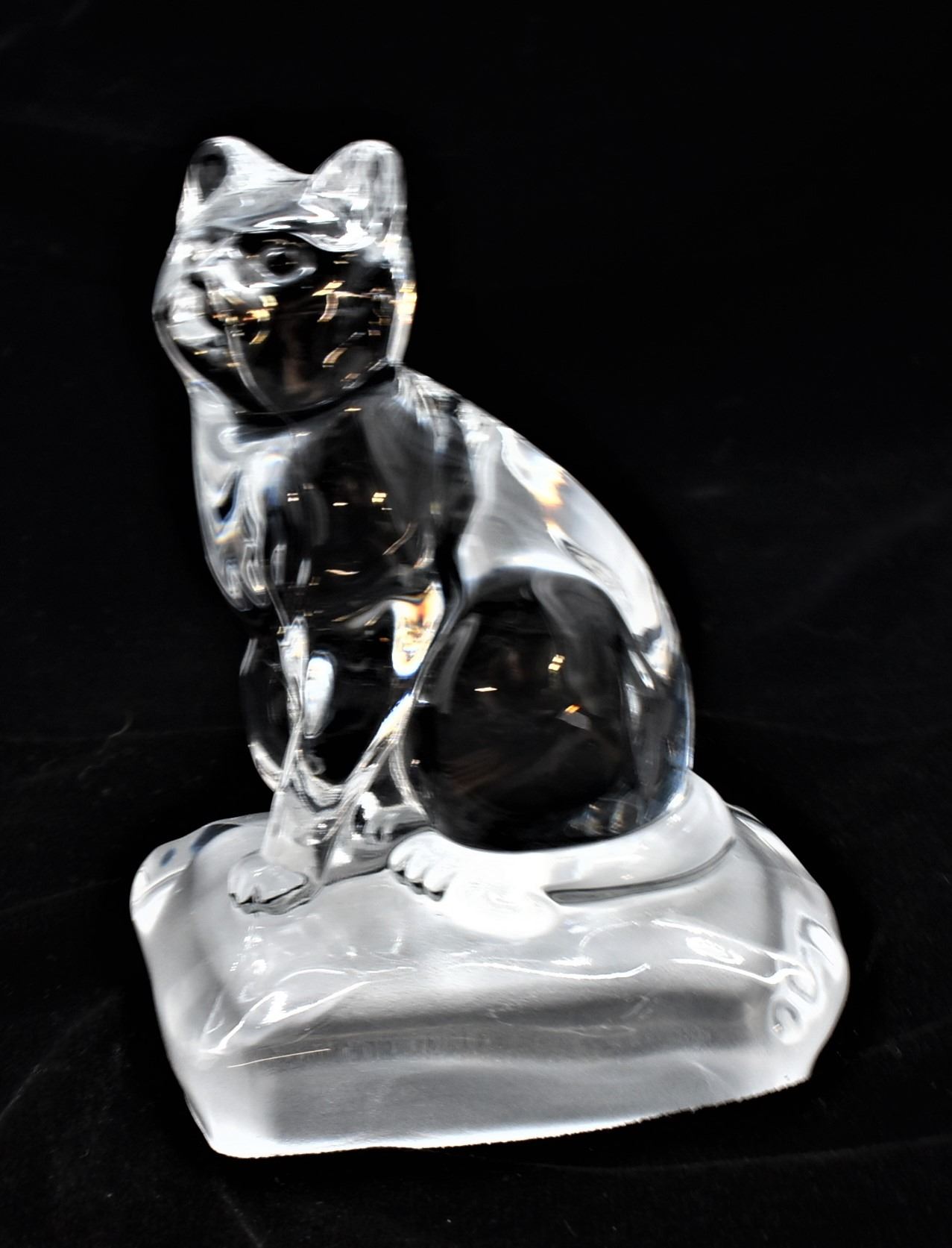 Vintage Cristal d'Arques Durand Lead Crystal Cat Figurine Sitting on a Frosted Glass Pillow, measures 3.75'' Deep x 5.25''H x 3''W