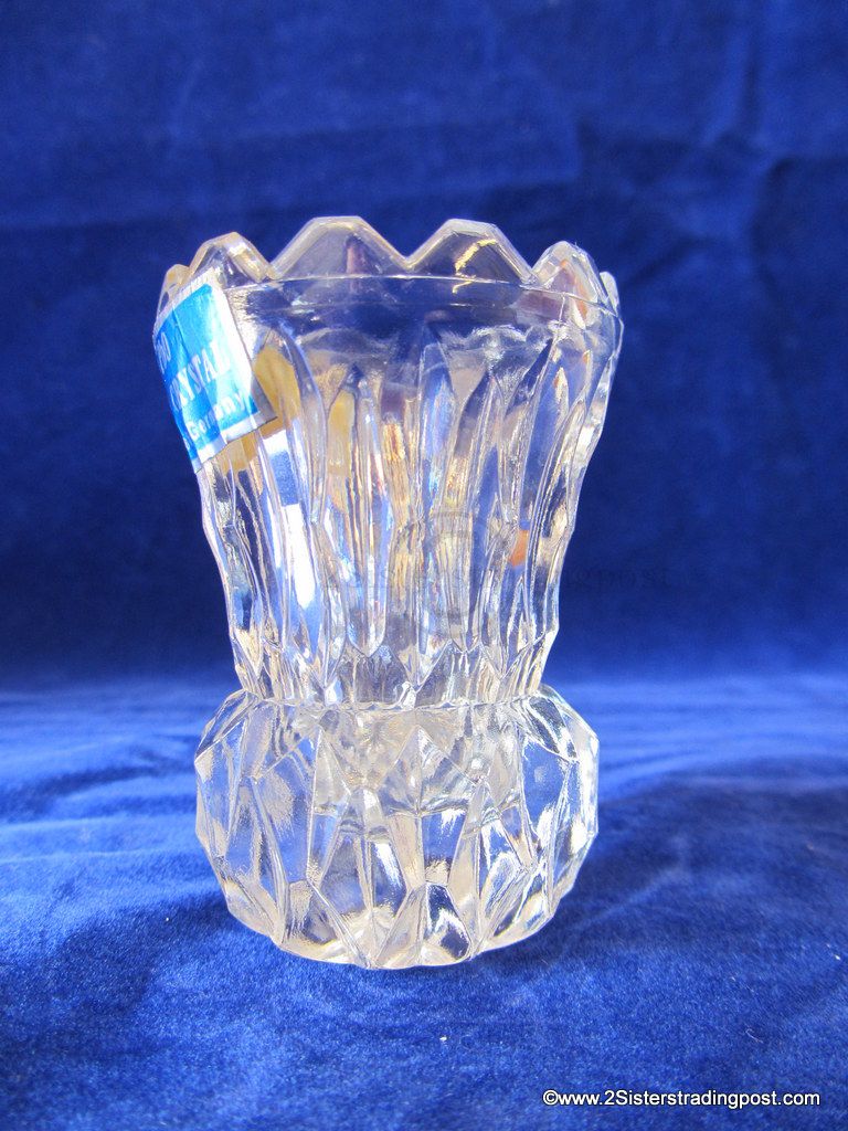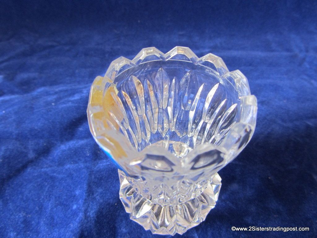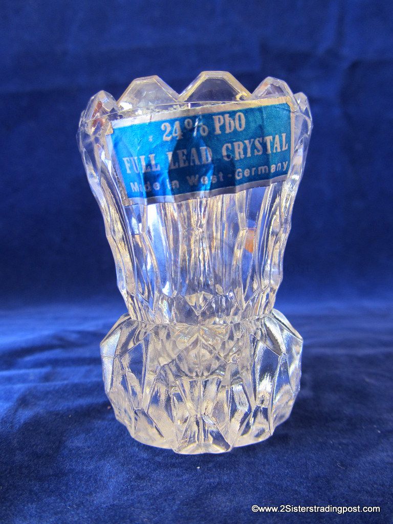 24% PbO Full Lead Crystal toothpick holder Made in West Germany. 2-5/8" tall x 1-7/8" across top. All points look and feel good no apparent point damage, still has the original sticker.