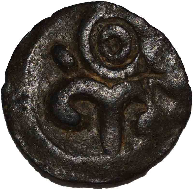 Chutus of Banavasi, Lead Fractional Unit, Obv: nandipad, Rev: srivatsa, 1.70g, 16.59mm, about very fine.