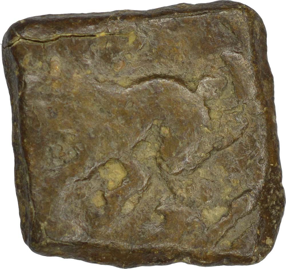 (Akola) Region, Lead Unit, Obv:horse walking to right with an upraised leg, sacred kumbha infront, nandipad above, Rev:ujjaini symbol, 6.75g, 18.33 X 18.47mm, about fine, Rare.