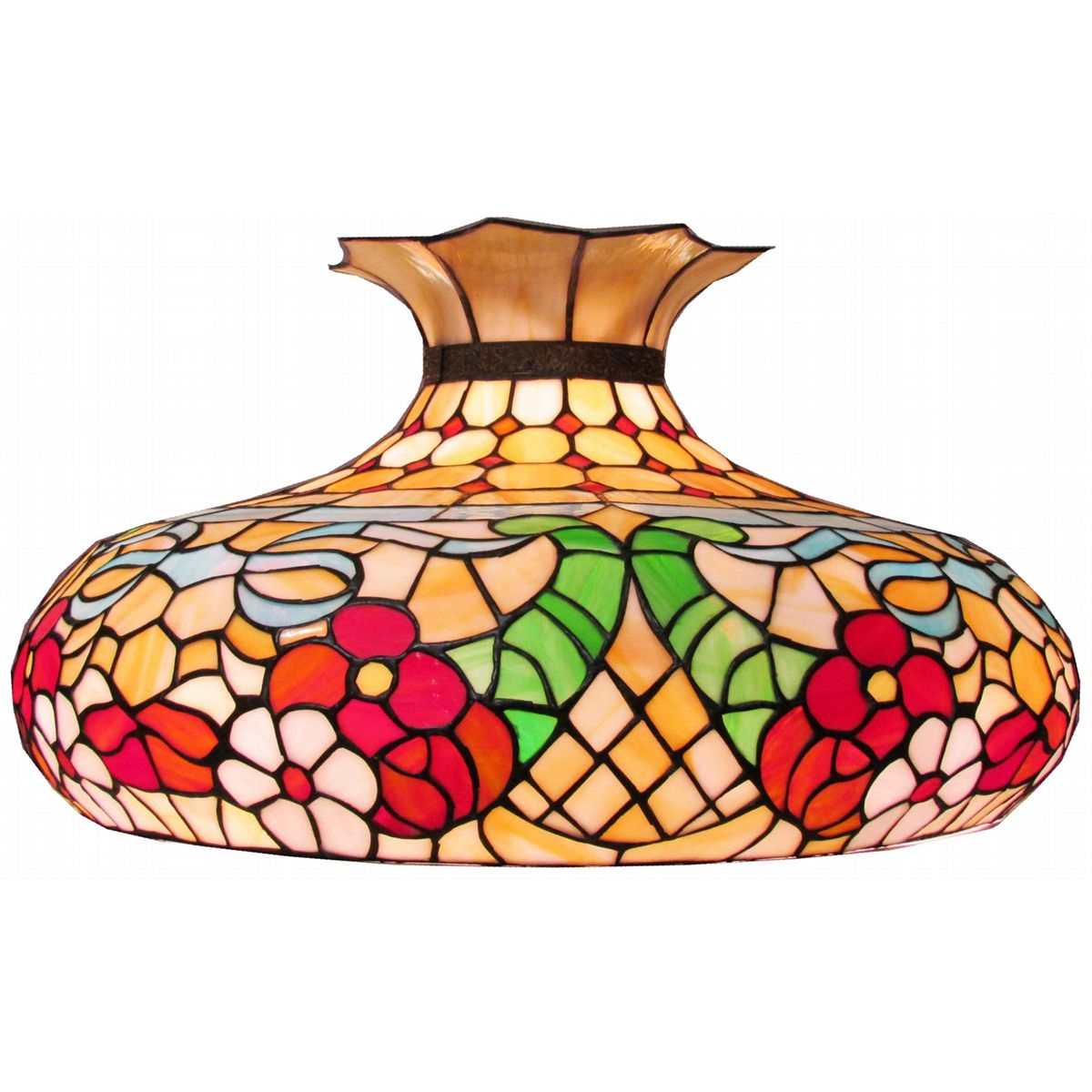 Leaded Glass Hanging Lamp. Excellent condition. 26 inch diameter X 14 inches tall.