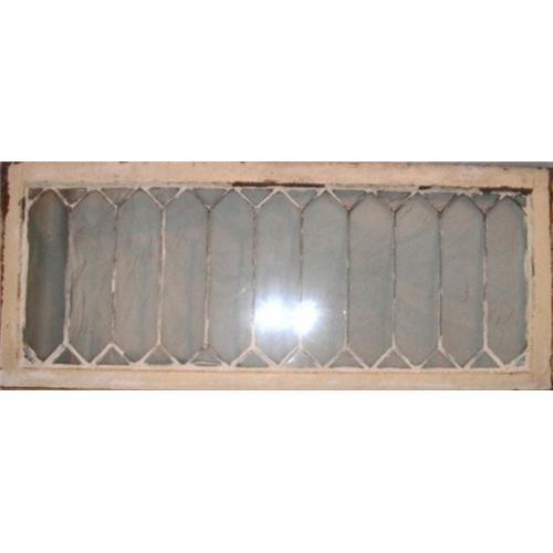 This transom window has 11 leaded glass panes, and a wood frame that is painted white. There is a small piece missing on one of the lower panes, but otherwise it is in good condition. Brought to you by Sand Hill East.