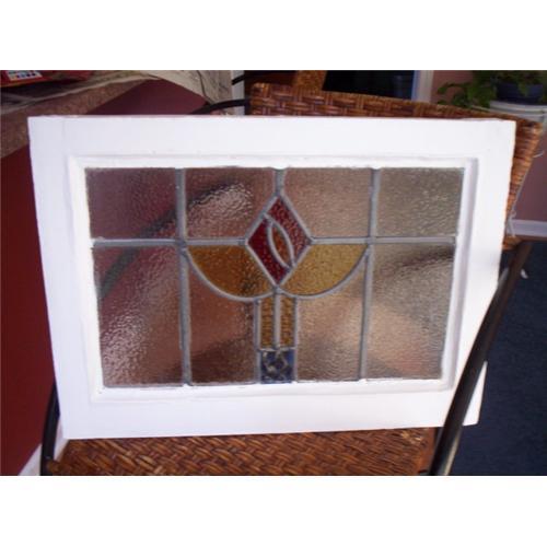 <table width="100%" border="0" cellspacing="0" cellpadding="4"><tr><td><em> </em></td></tr><tr> <td width="100%"> This is a leaded stained glass window measuring 14 7/8"x20 5/8". It has blue, red & yellow glass in the center. There is wear to the wood, and it has been repainted at some point. No chips or cracks are noted in the window. Many people use these in there homes as wall art. Maybe you have a wall that needs dressing up. </td></tr><tr> <td> </td></tr><tr> <td>Reference #: WH688</td></tr><tr><td>Condition:Good</td></tr><tr><td>Year:circa 1940</td></tr><tr><td>Title:Leaded Stained Glass Window</td></tr><tr><td>Location:Montgomery, Alabama</td></tr></table>
