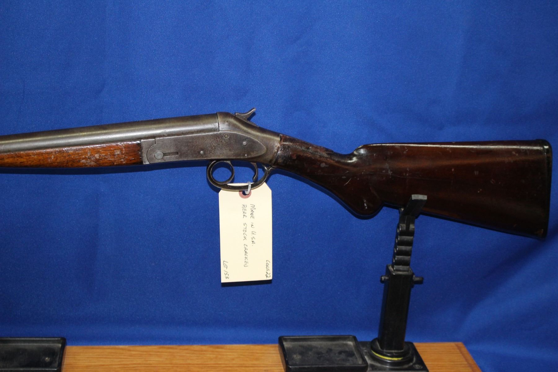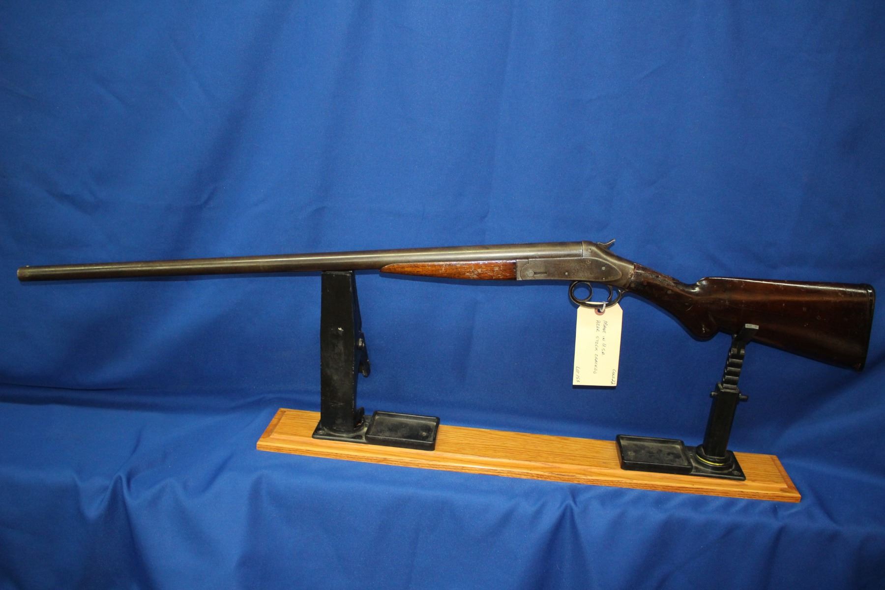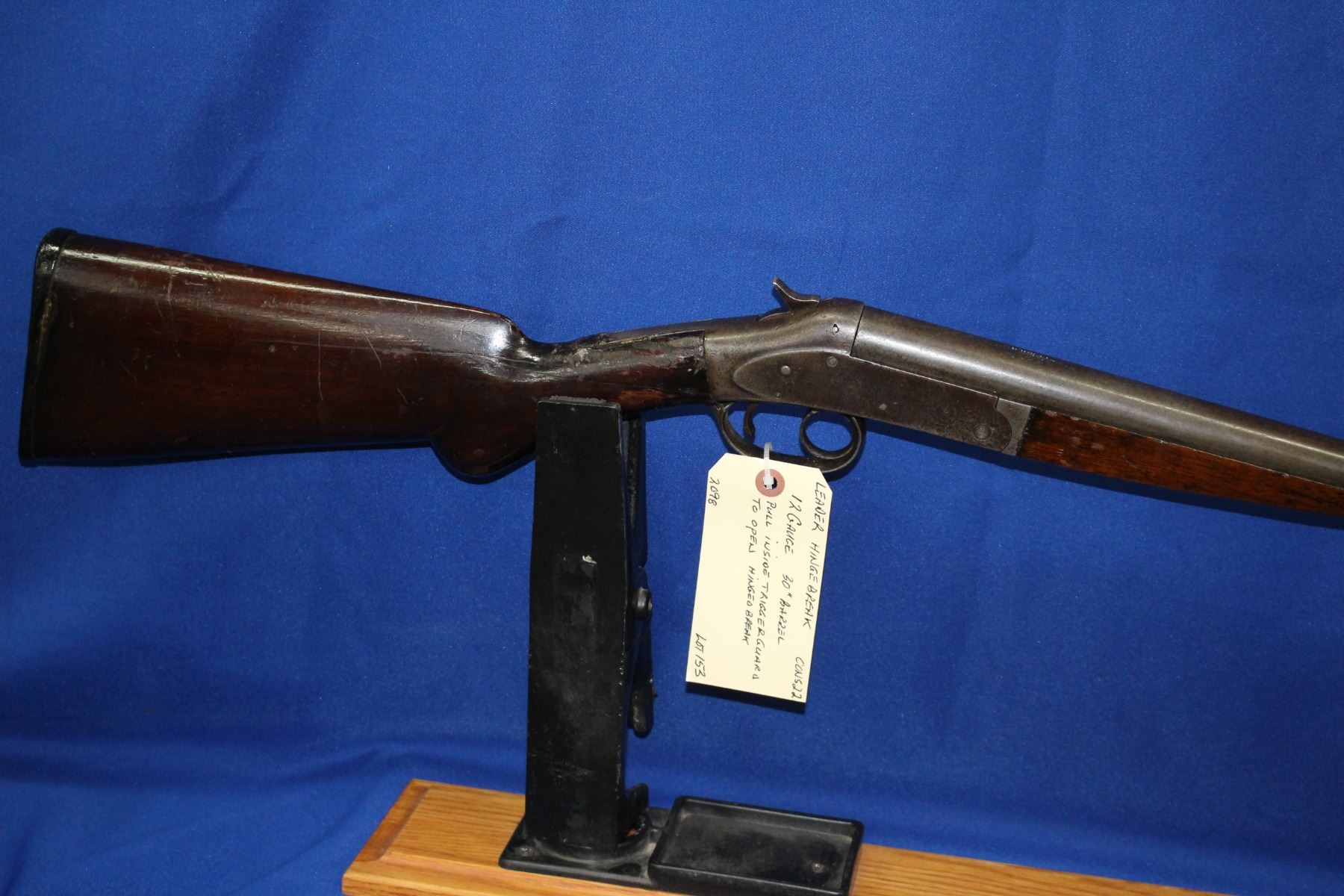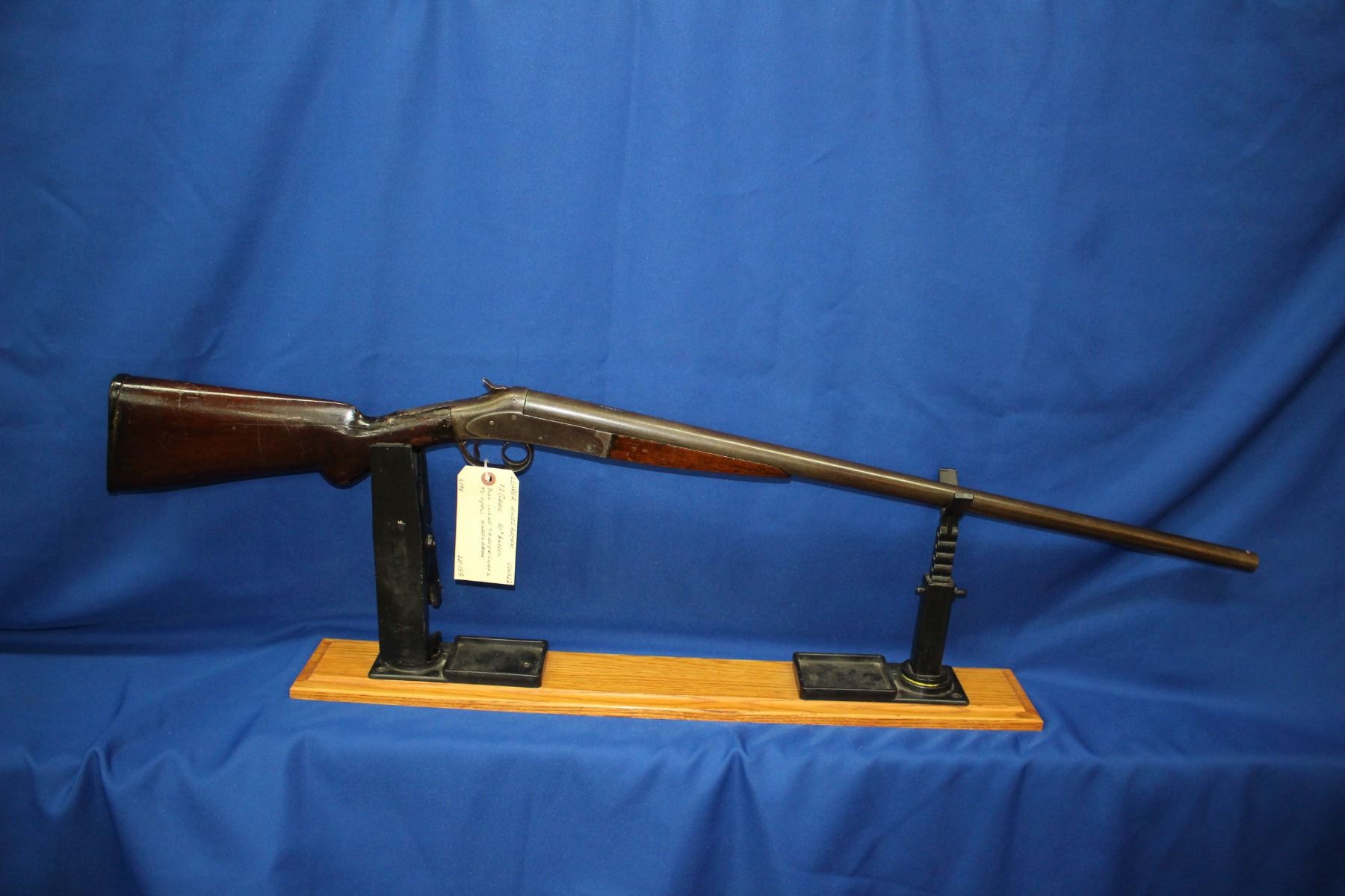 12 ga., Hinged Break; Has a round pull inside the trigger guard to open the break; 30" Barrel; Cracked Rear Stock; S/N 2098