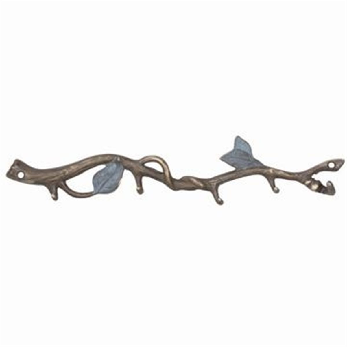 Leaf Key Hook - 1"H 10"W 2"D - Brass - Verdi & Bronze Finish
