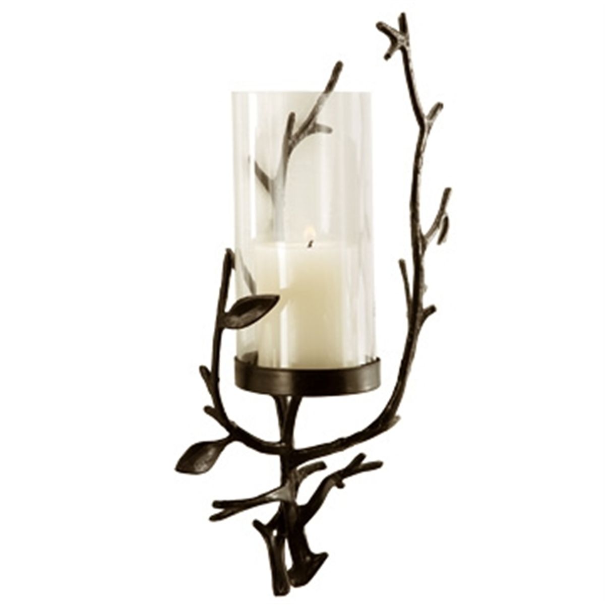 Leaf Wall Mount Hurricane Candle Holder - 16.5"H 9"W 5.5"D - Cast Iron & Glass