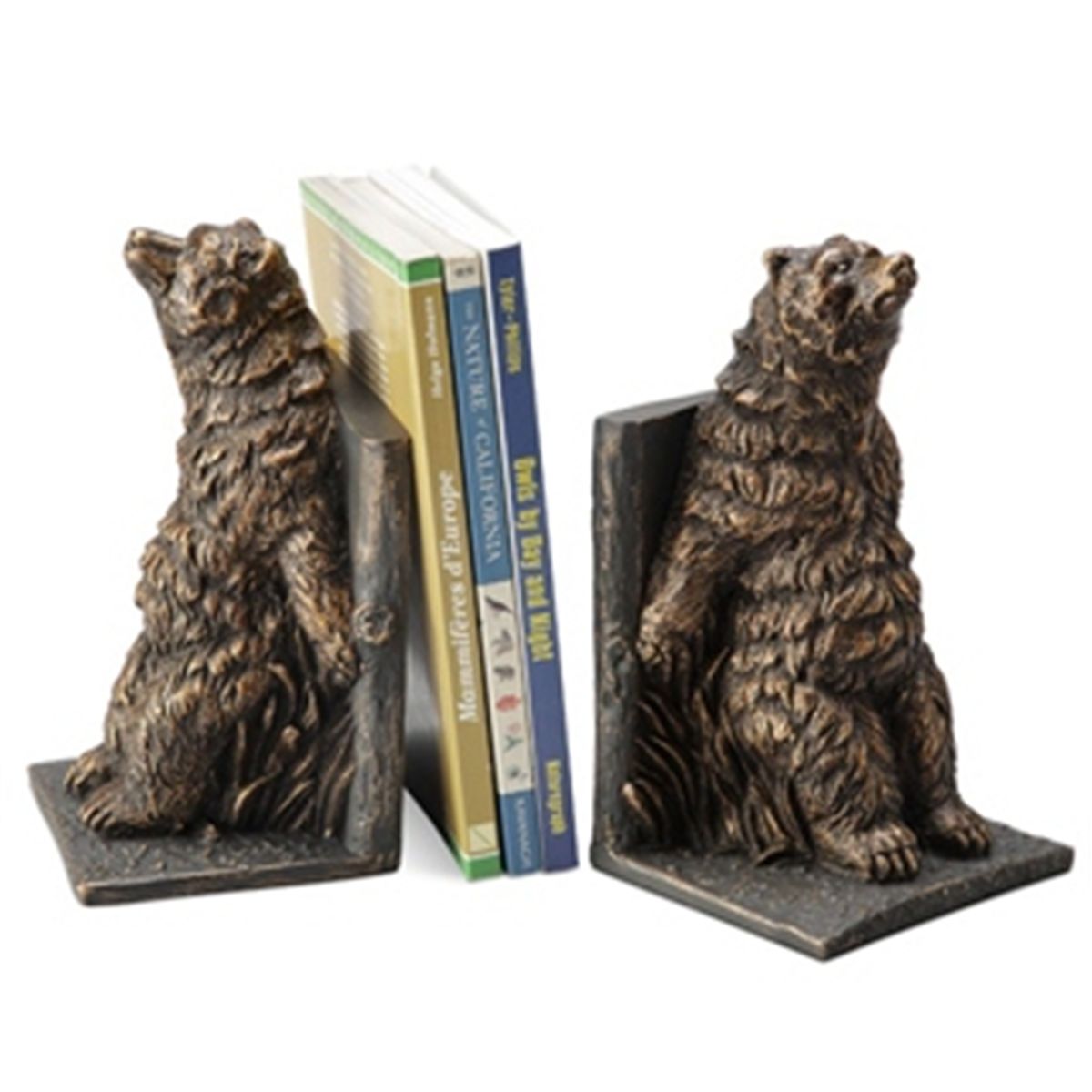Leaning Bear Bookends - 8.5"H 5"W 4"D - Resin - Bronze Finish