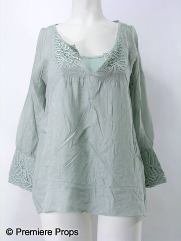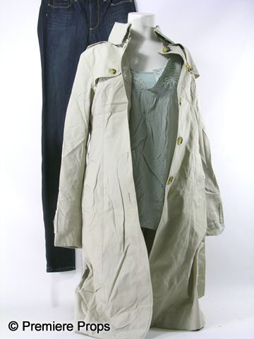 Leap Year - Anna (Amy Adams) HERO khaki "Burberry" overcoat with green/white floral pattern lining (Size 12), light green "Day Birger ET Mikkelsen" scoop neck blouse with stitch detail - tagged with actor name (No size), light green "Day Birger ET Mikkelsen" ribbed tank top (Size M), dark blue "Paige" jeans (Size 27). (Screen worn).