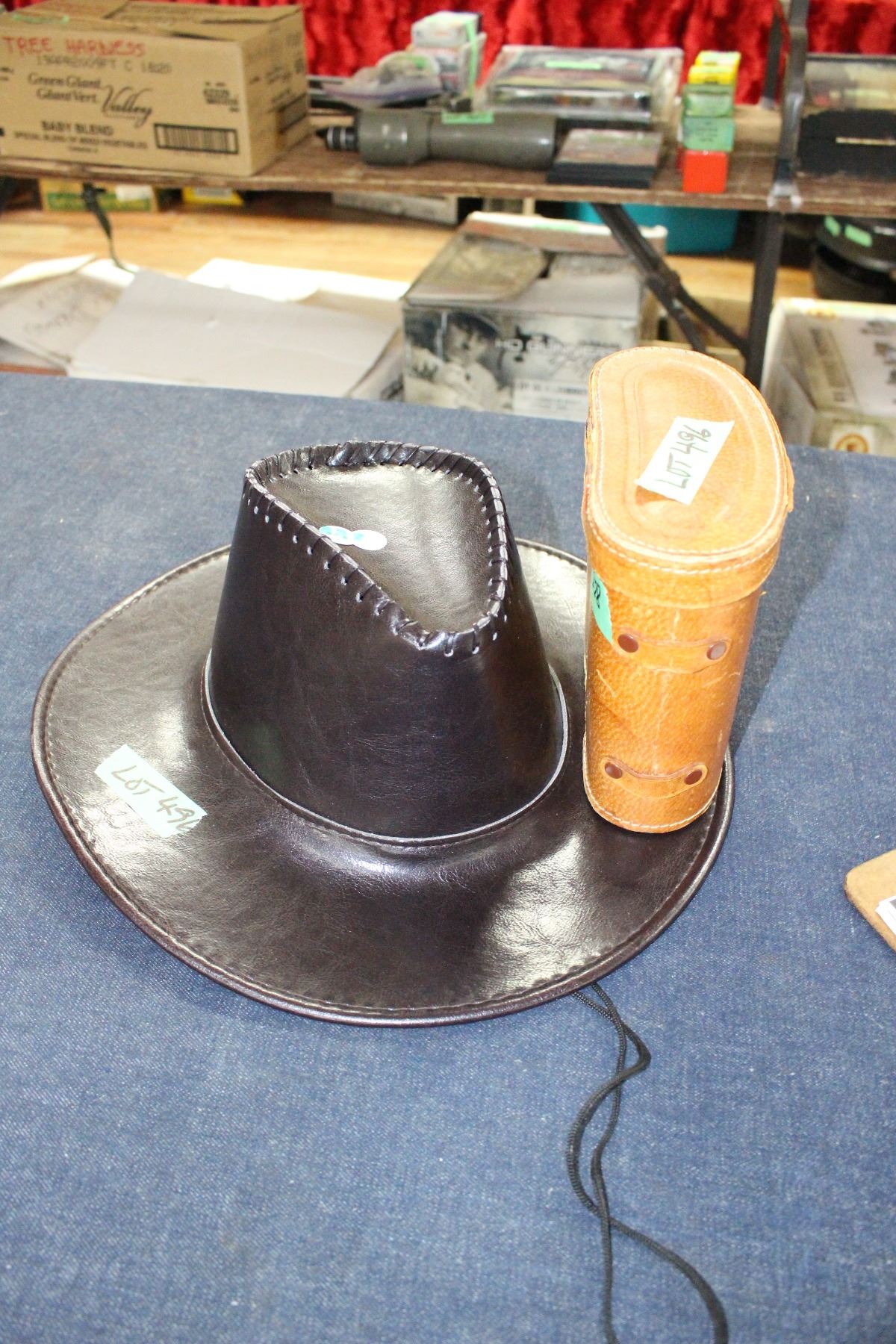 Leather Hat & a Pr of Fisher Dietz 7 x 35 Binoculars - in a Case