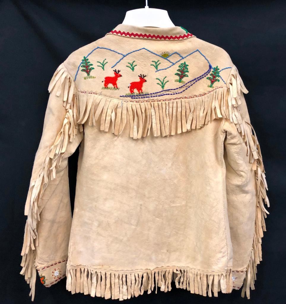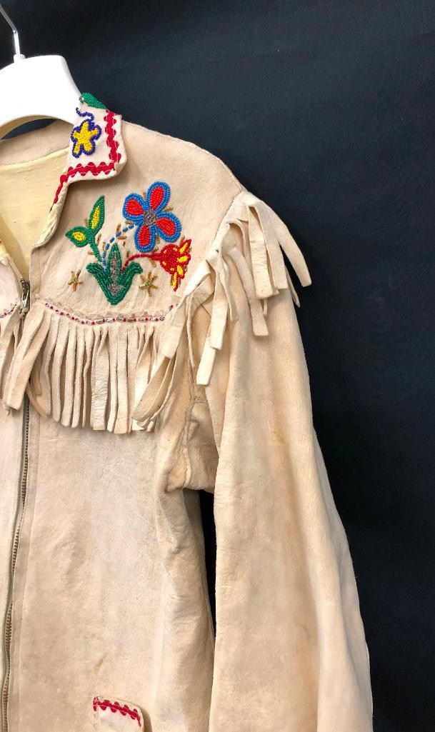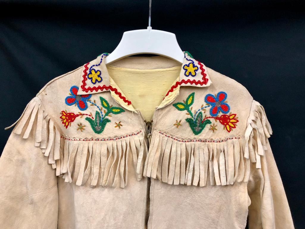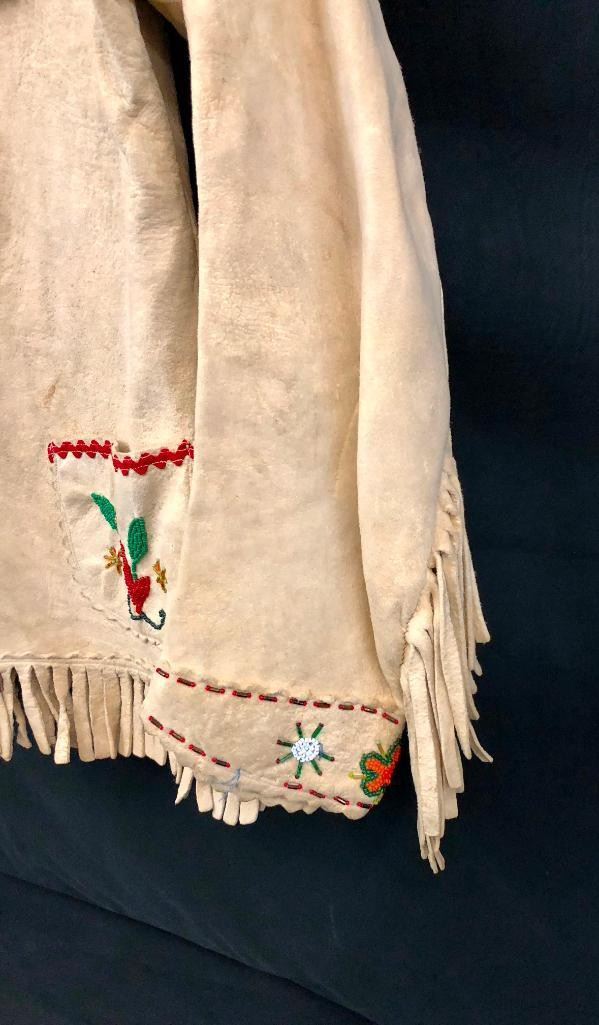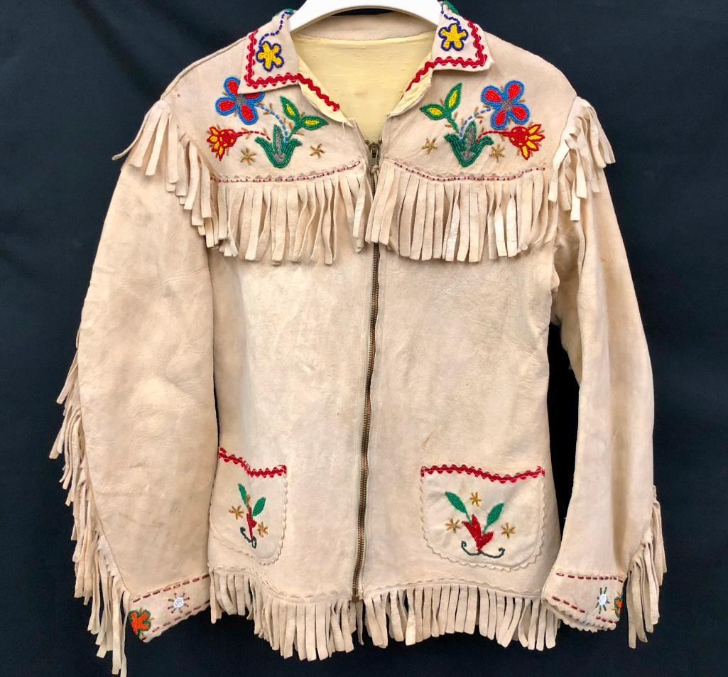 For sale in this lot is a nice leather jacket with beadwork and it has a nice look to it. It was handmade and hand-stitched, used brain-tanned leather and was made in the old school style. The jacket features leather fringe and is lined inside. MAKER: Unmarked. APPROX AGE: Vintage, C. mid-century. SIZE: 16-1/2 inches armpit to armpit. 25 inches long. CONDITION: Good for its age, normal wear expected. Please look closely at the pictures as they are an important part of our description and are hereby incorporated into the description, specifically with regards to condition. SHIPPING: There will be a $10 handling / packaging fee for shipping this lot. The actual cost of postage will be added on top of that. BUY IT NOW: If you would like to buy this item now, without waiting for the auction day to bid on it, we do offer this option (which is available up to 48 hours before the actual auction starts). The “Buy it Now” price is the high estimate of this lot (plus applicable fees and the Buyer's premium is discounted to 10% when using the Buy it Now option). If you would like to exercise this option, you must contact us by email (or phone as long as you talk to someone live). Reference this lot number and your intention to "Buy it Now."