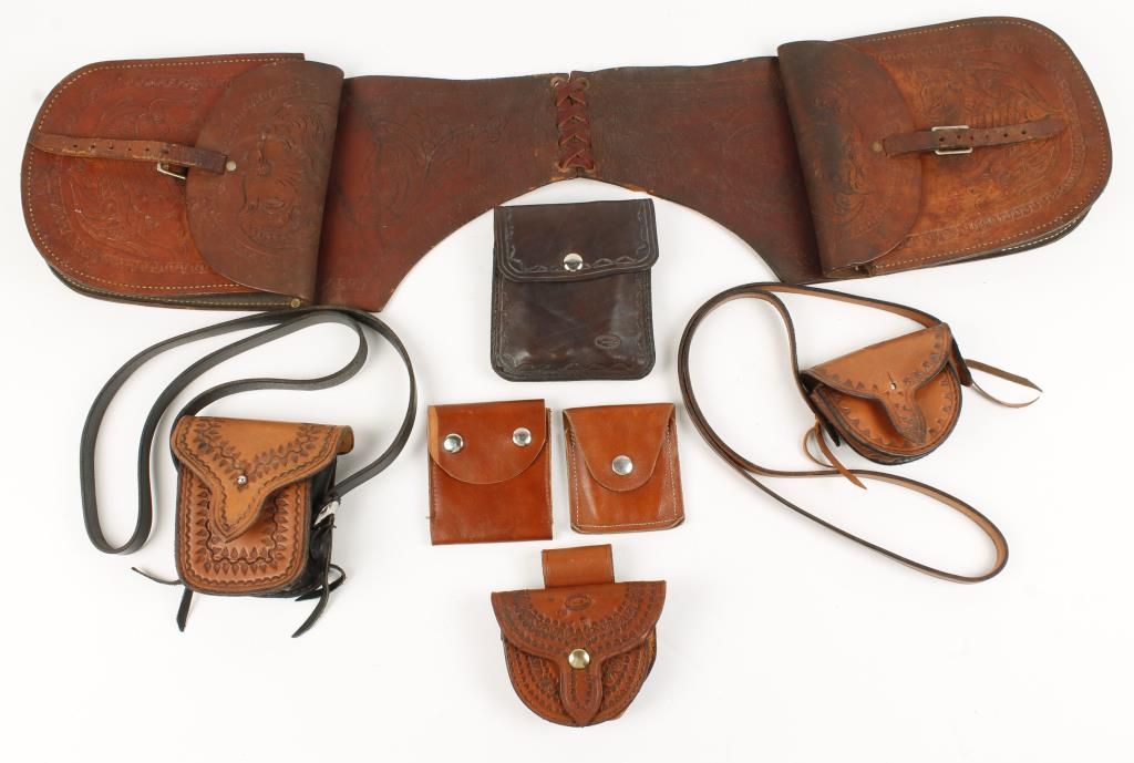 Includes a Western tooled leather saddle bags and 6 Greaseflat pouches.