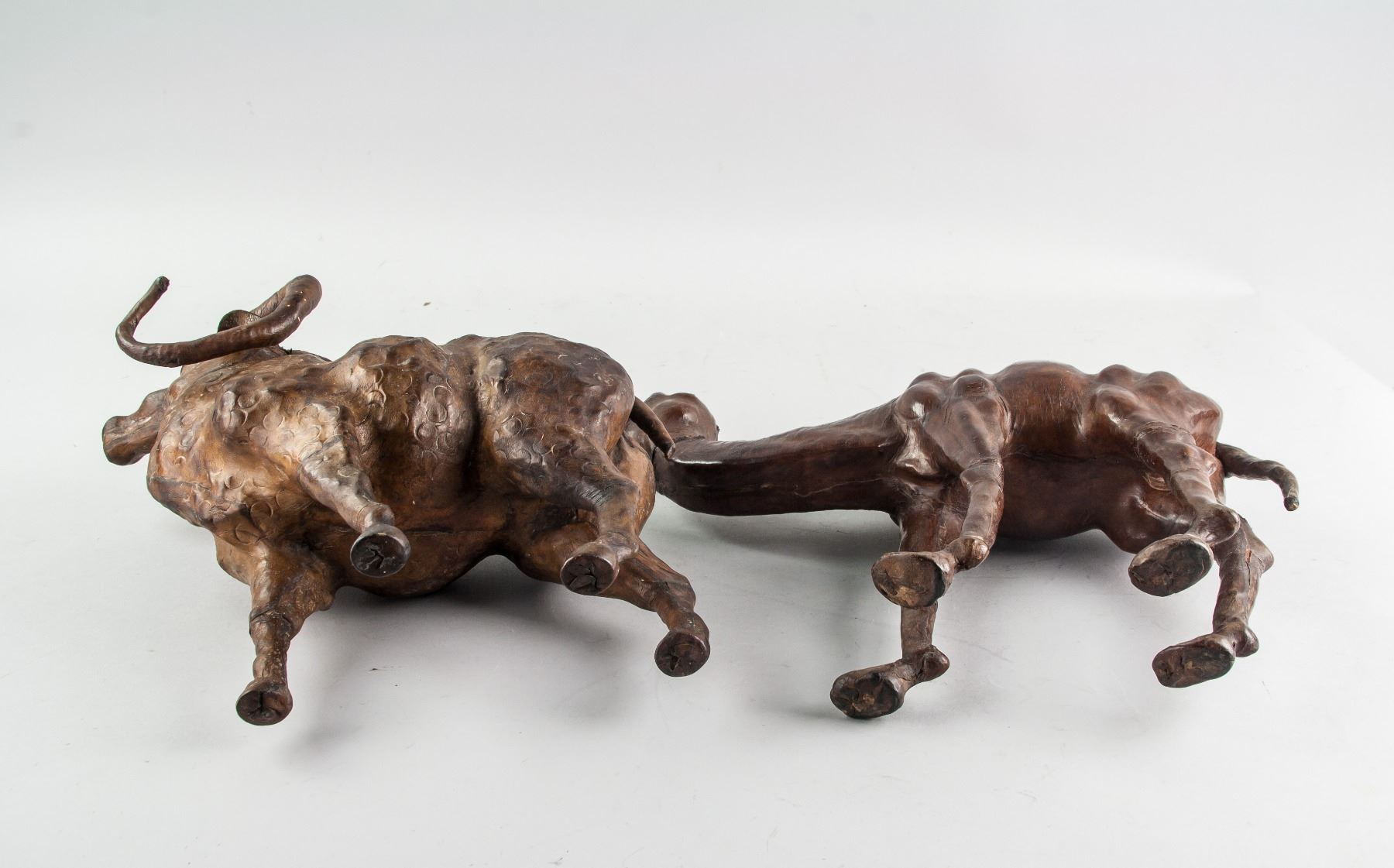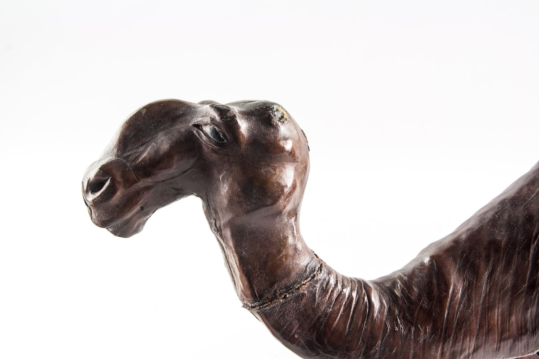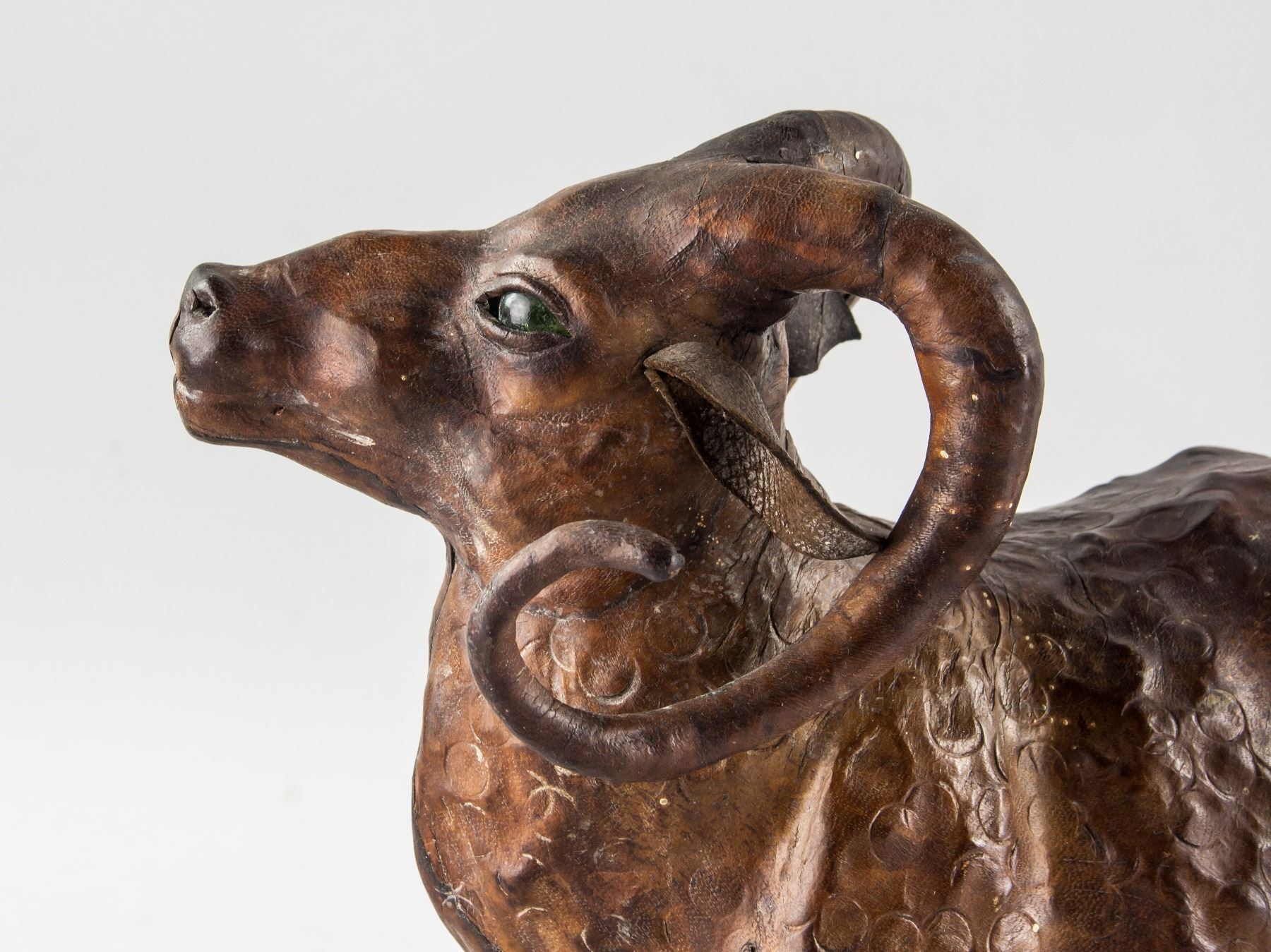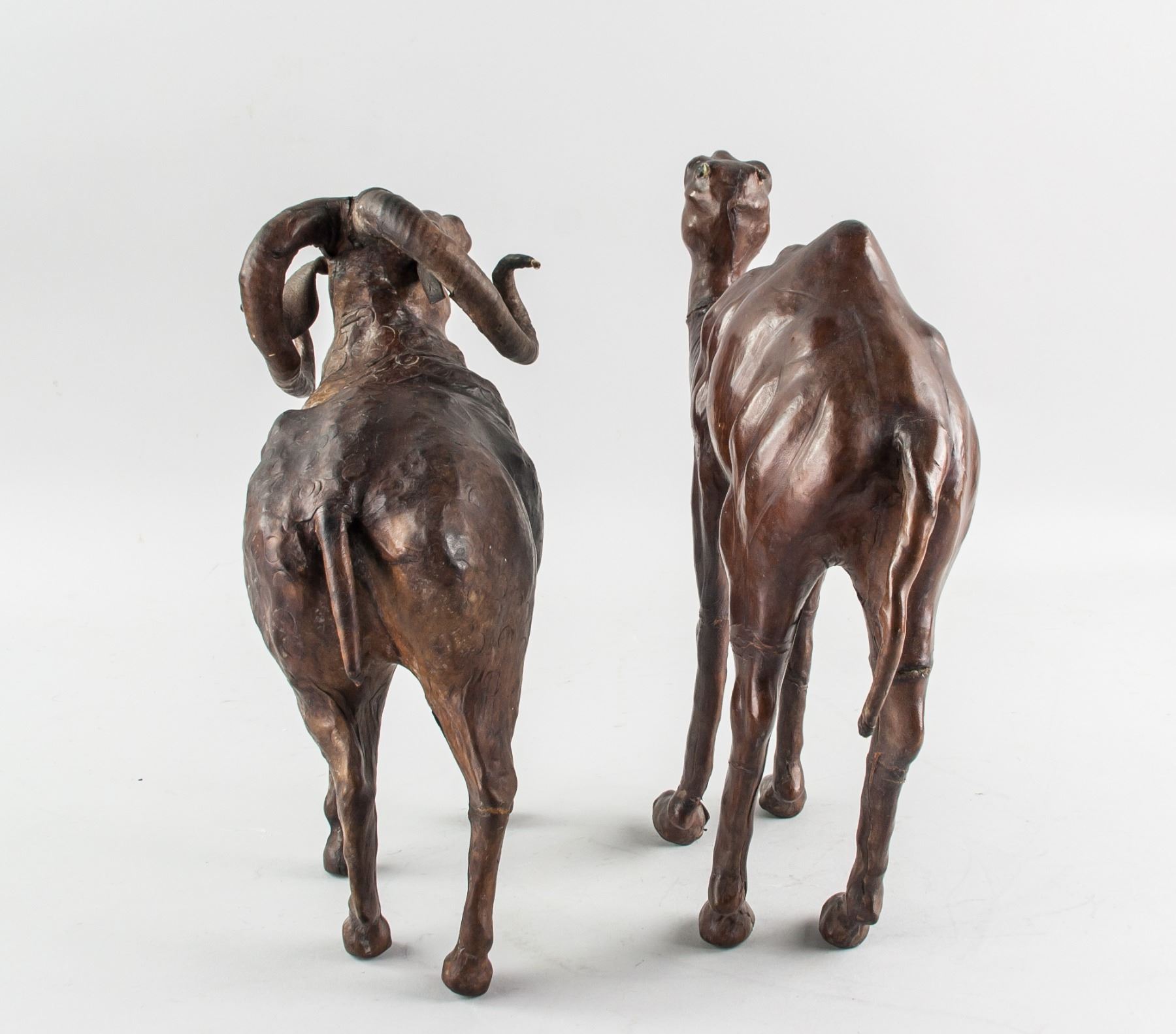 2 assorted leather animal figures, of 1 camel and 1 ram, ears of camel are missing, made of unknown leather, 28 x 36 cm, 1230 grams