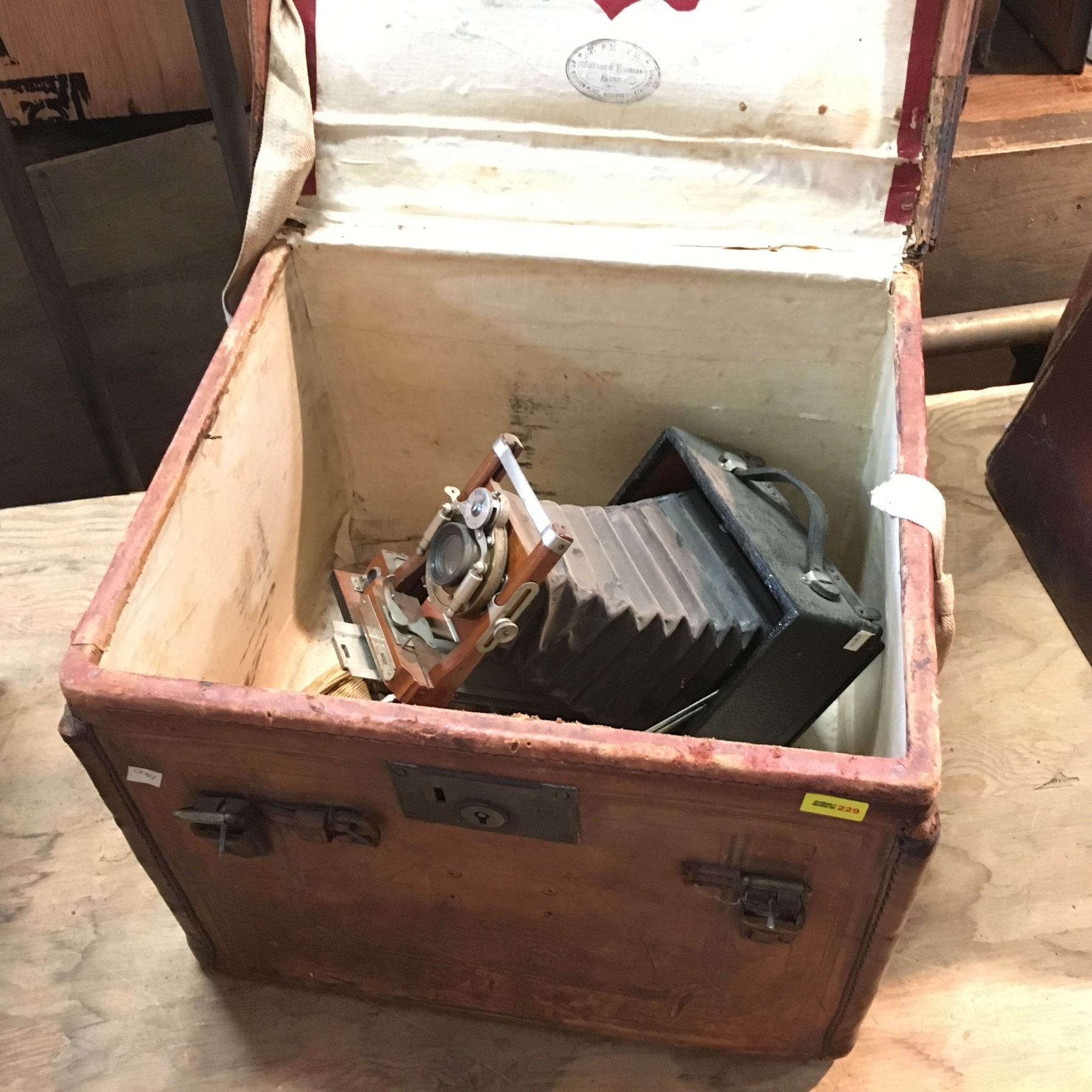 Leather Phonograph Carry Case & Bellows Camera: Leather Case " Made by John Cattnach No. 1 Wall Street, NY" & Camera "Cycle Wizard C.Jr"